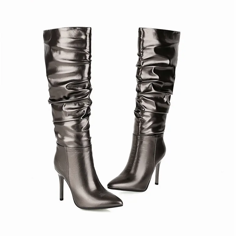 Be the first to review “2025 autumn and winter boots stiletto heel new but knee boots golden high heel knight boots”
