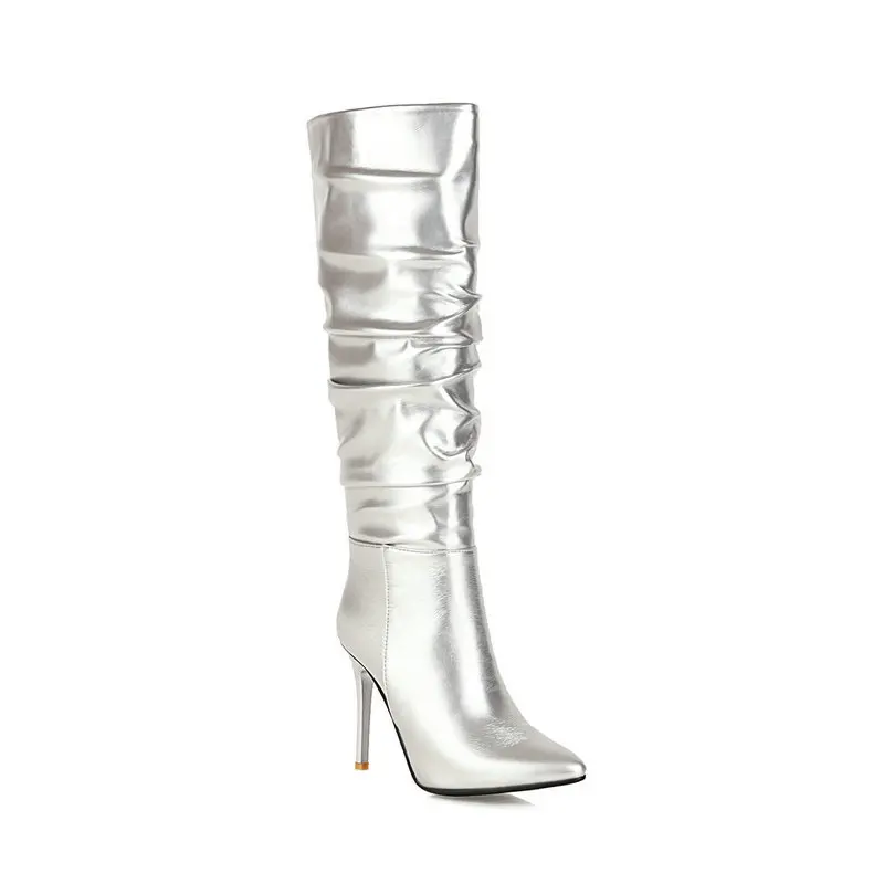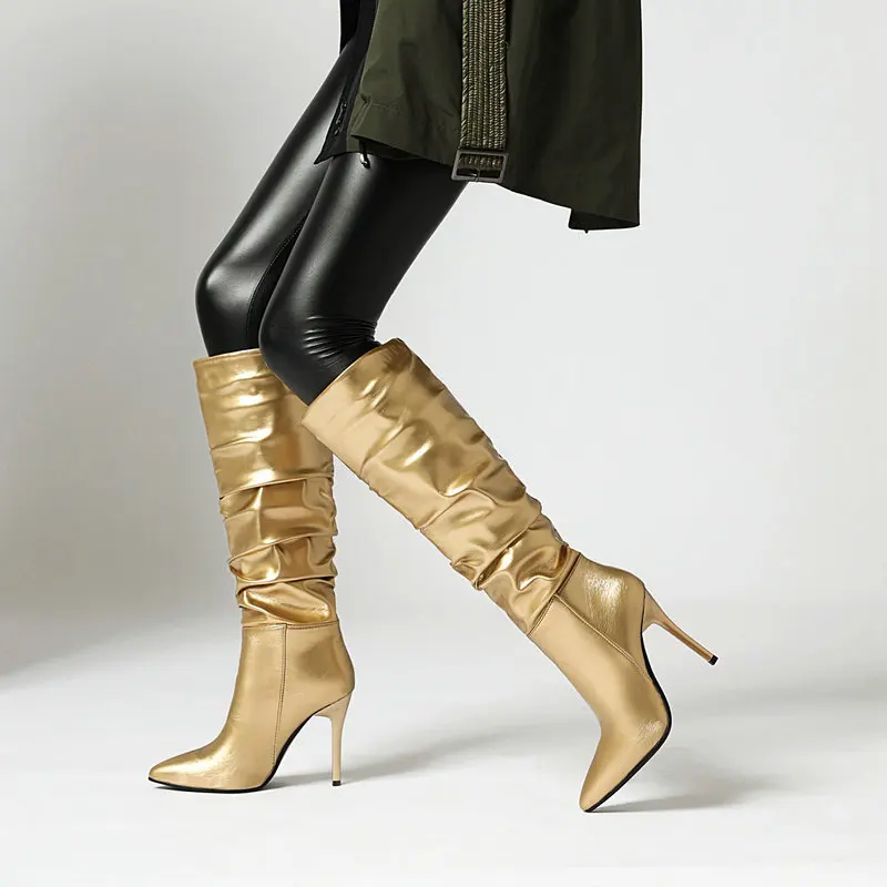 2025 autumn and winter boots stiletto heel new but knee boots golden high heel knight boots