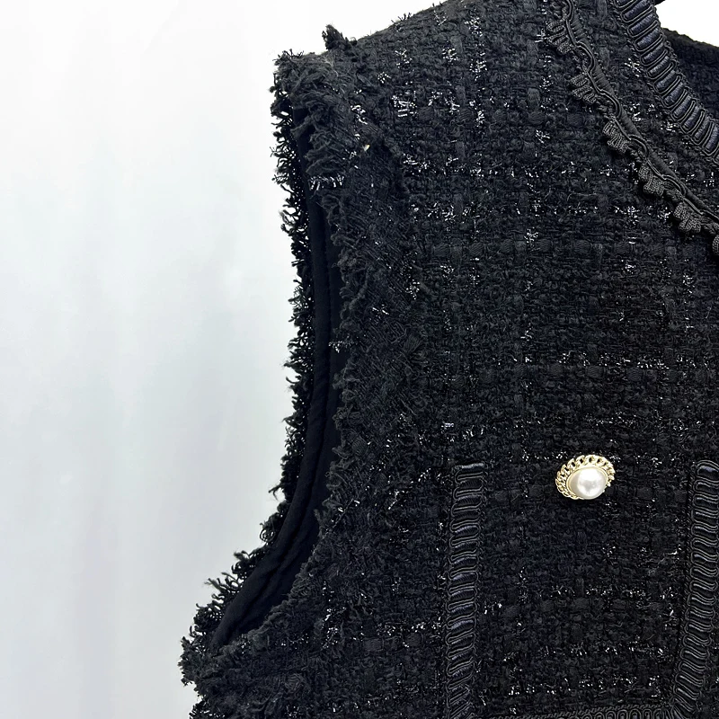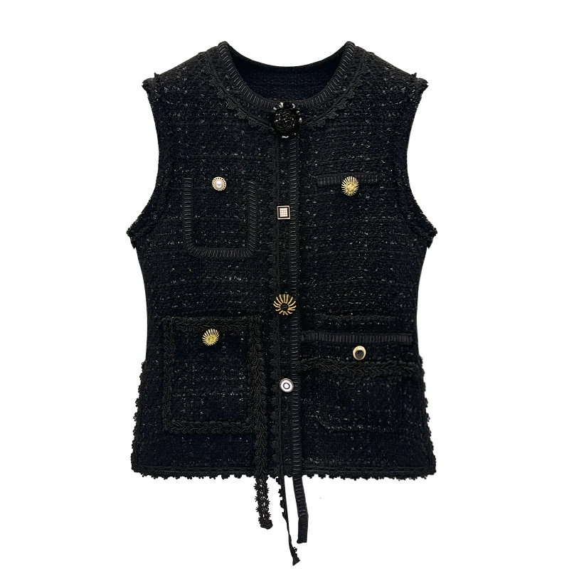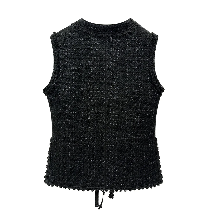 2025 fashionable and elegant round neck single-breasted light luxury socialite high-end temperament tweed vest