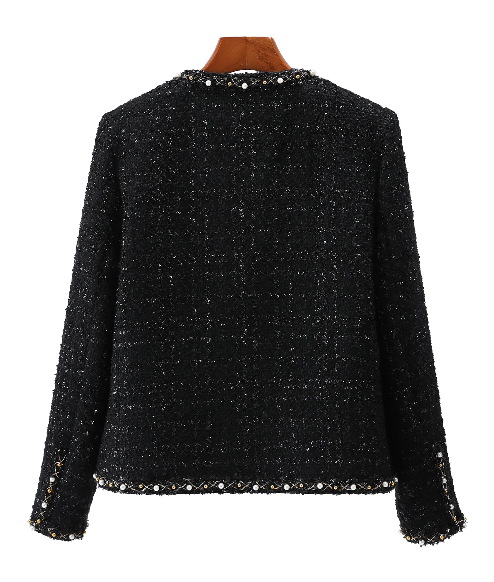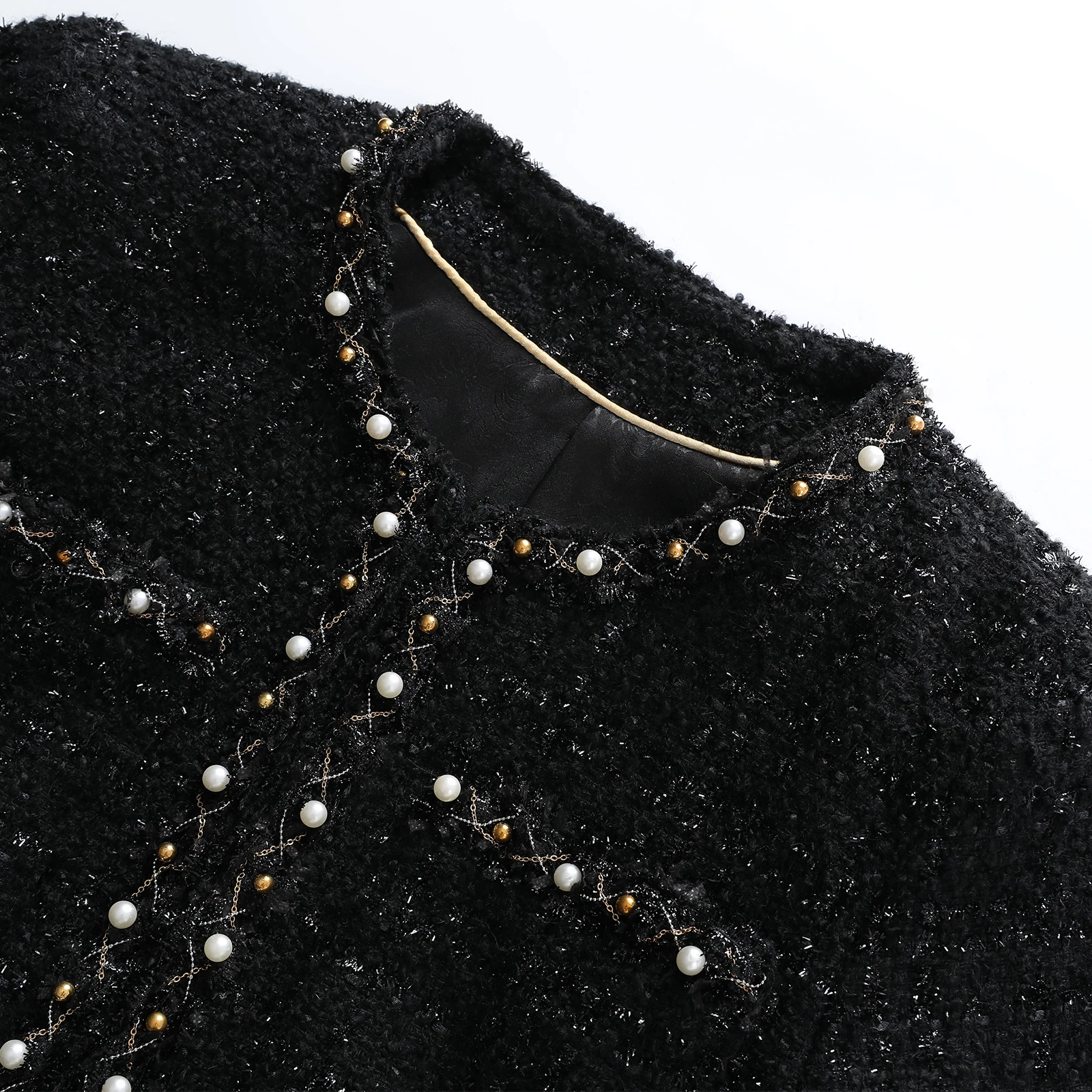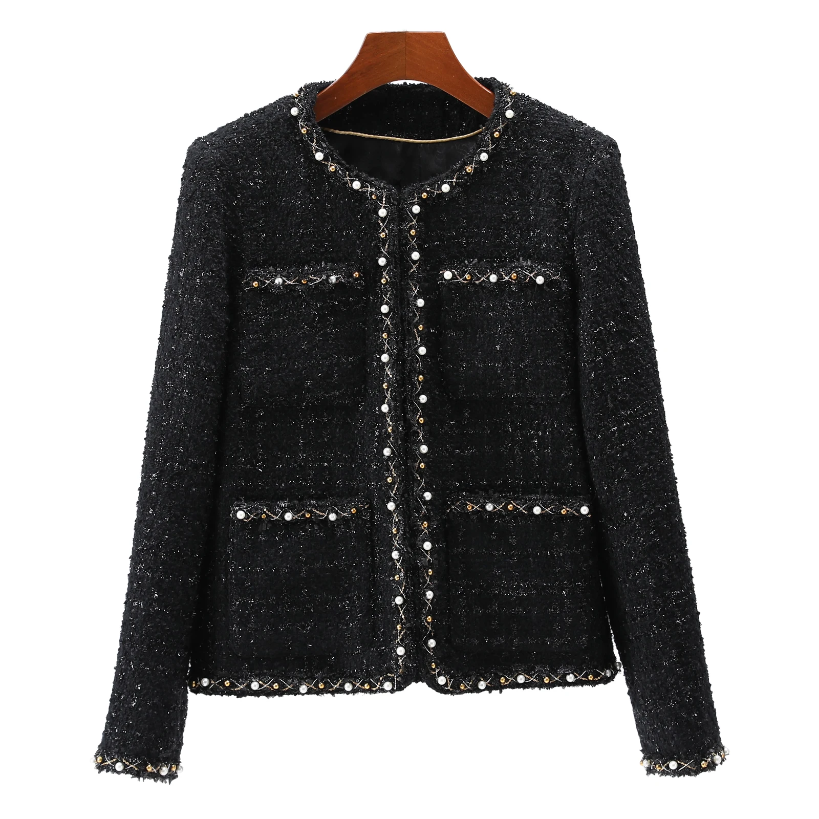2025 new fashion round neck elegant light luxury celebrity high-end heavy industry beading temperament design tweed jacket