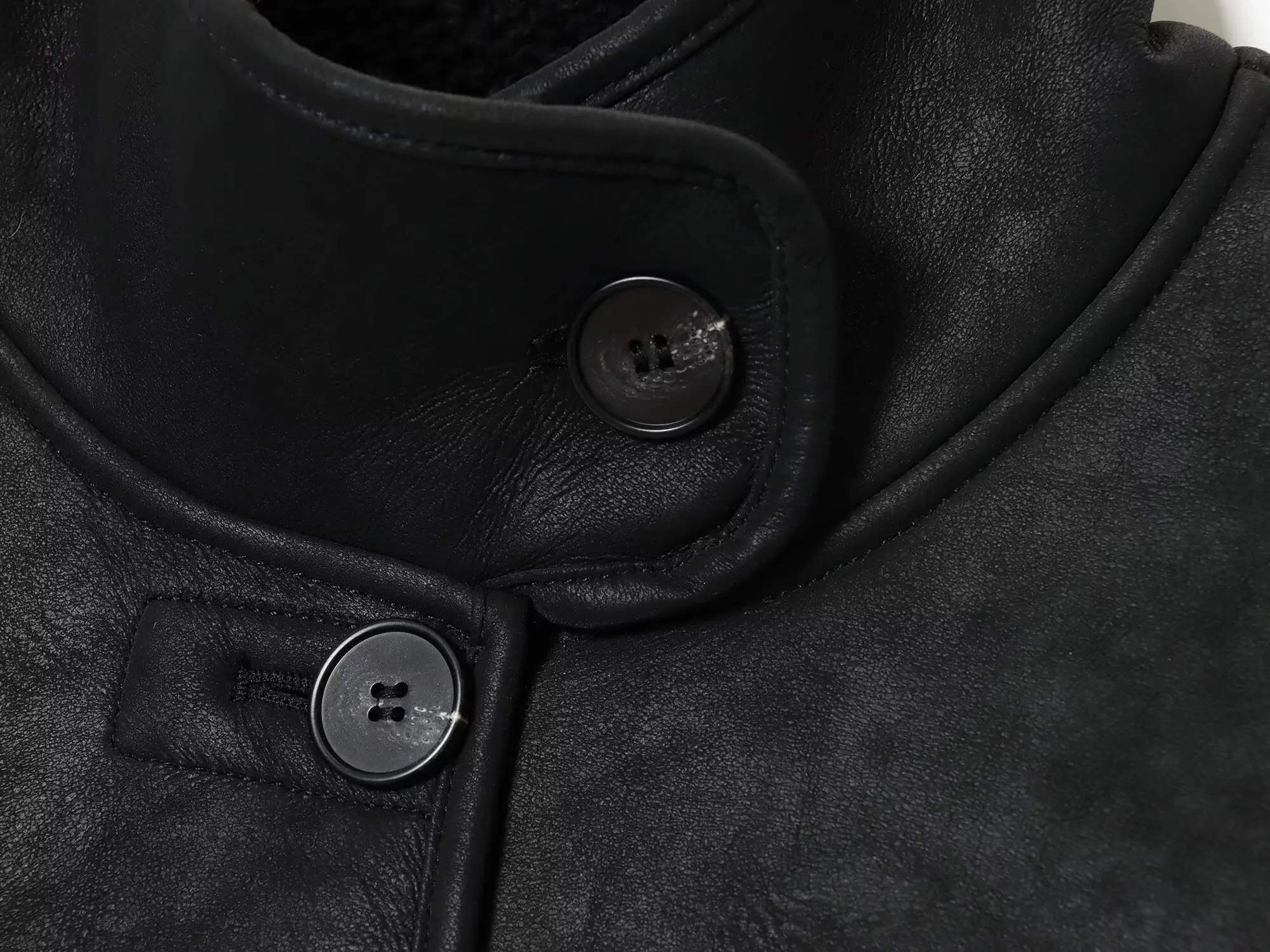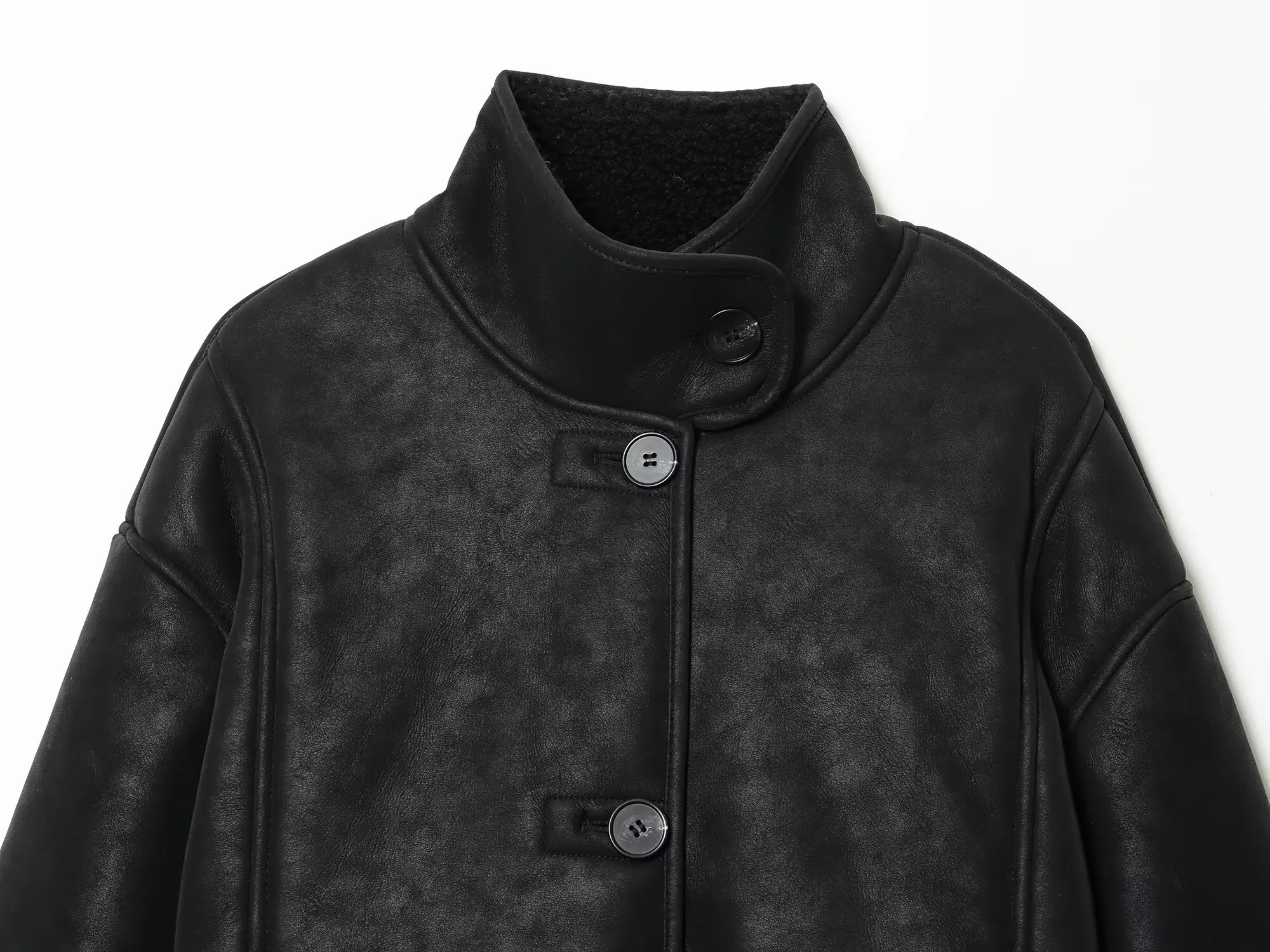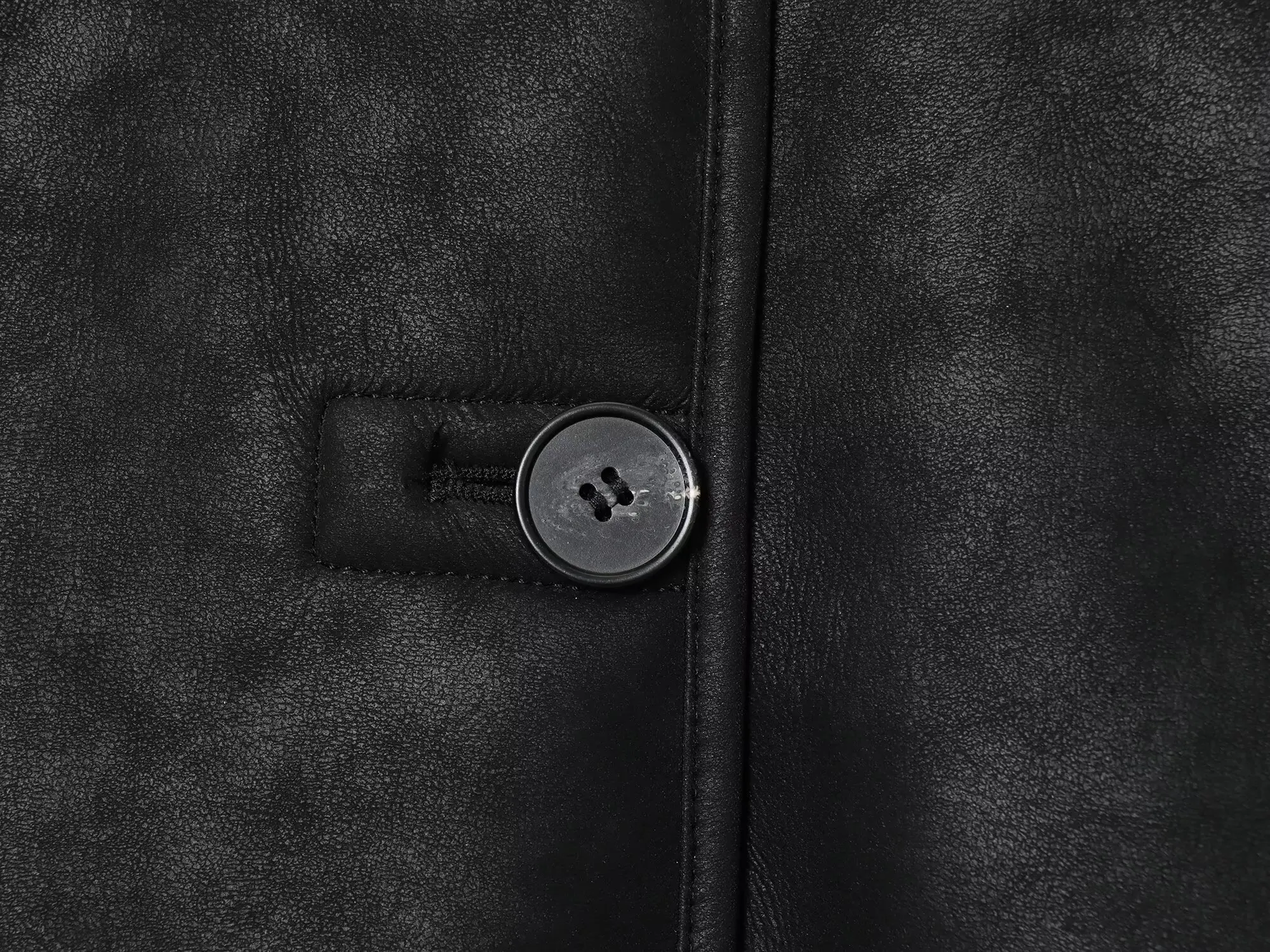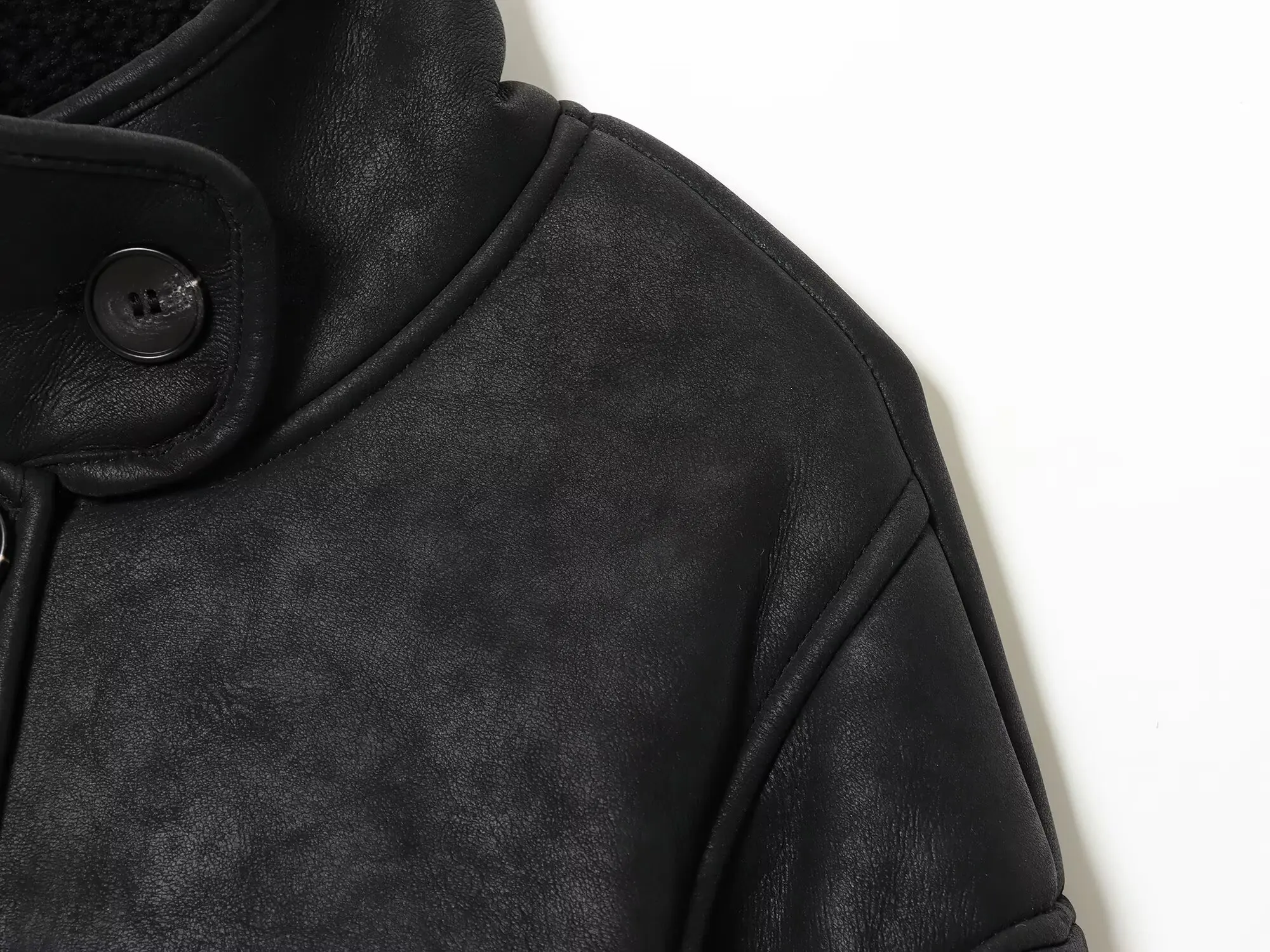 2025 new women’s long sleeved suede effect double-sided jacket women’s leather jacket button casual short jacket autumn new fash