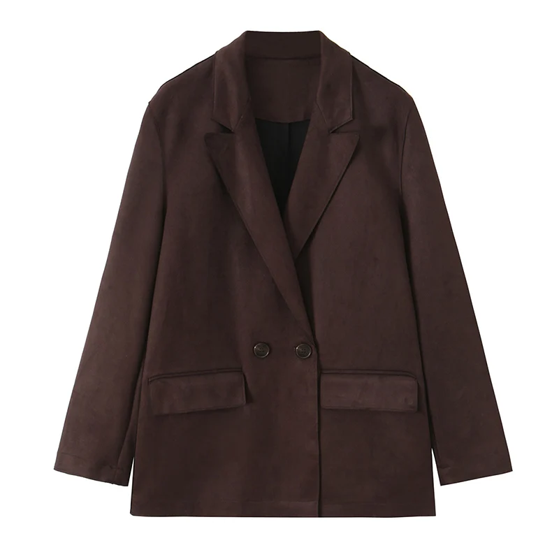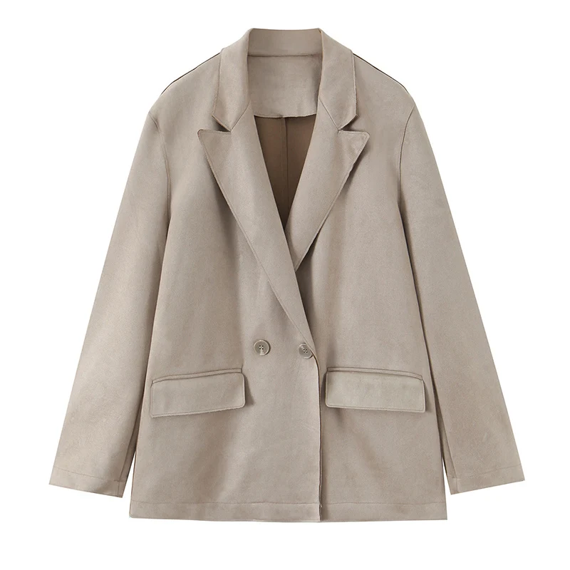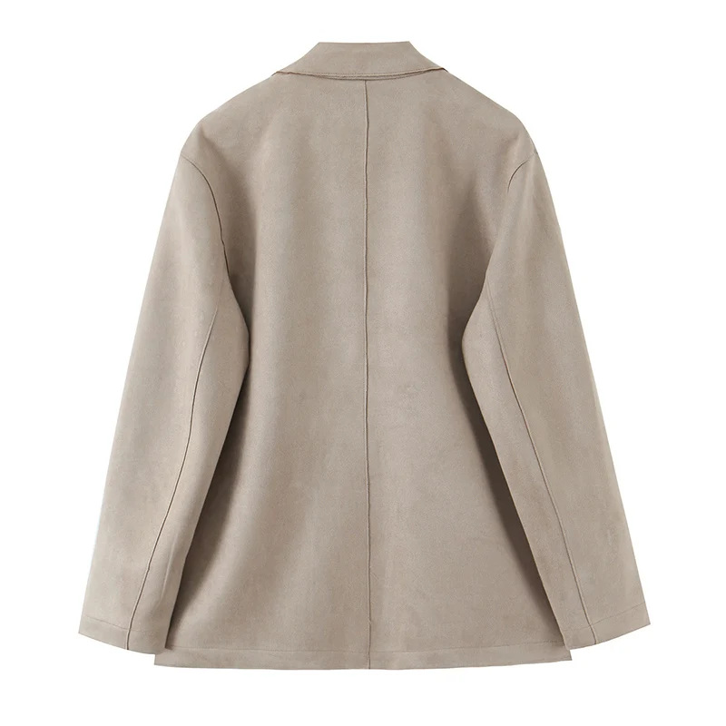2025 Women Autumn Blazers Coats Casual Solid Loose Jacket Female Elegant Street Long Sleeve Suede Blazer Outerwear Clothing