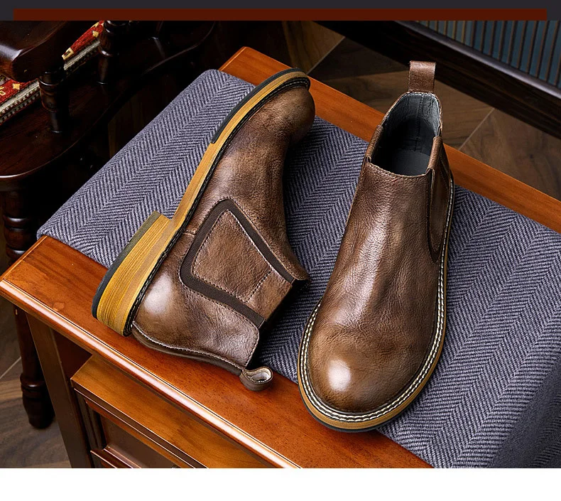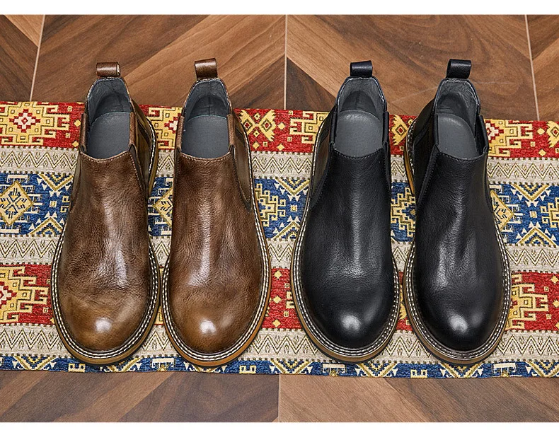 British Style Men’s Chelsea Boots New Fashion Male Spring Boots Genuine Leather Retro Ankle Boots Business Dress Shoes