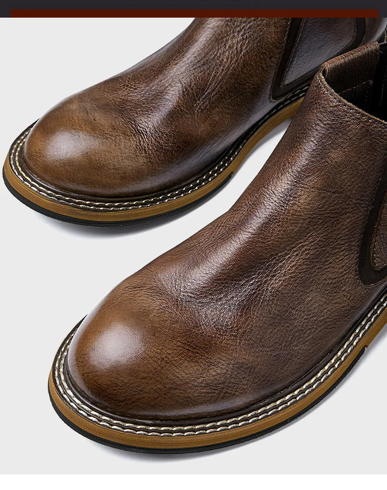 British Style Men's Chelsea Boots New Fashion Male Spring Boots Genuine Leather Retro Ankle Boots Business Dress Shoes