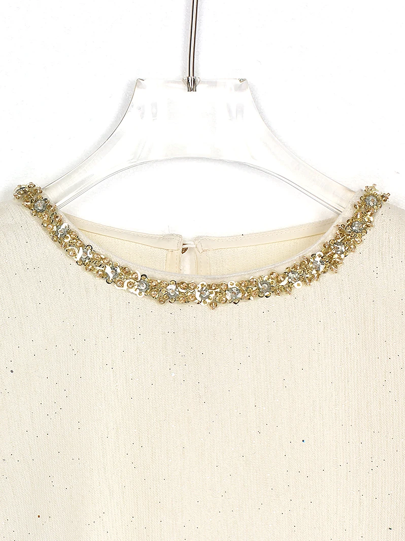 Featuring exquisite nail bead details and embroidered flares. this set exudes an elegant temperament perfect for any occasion.