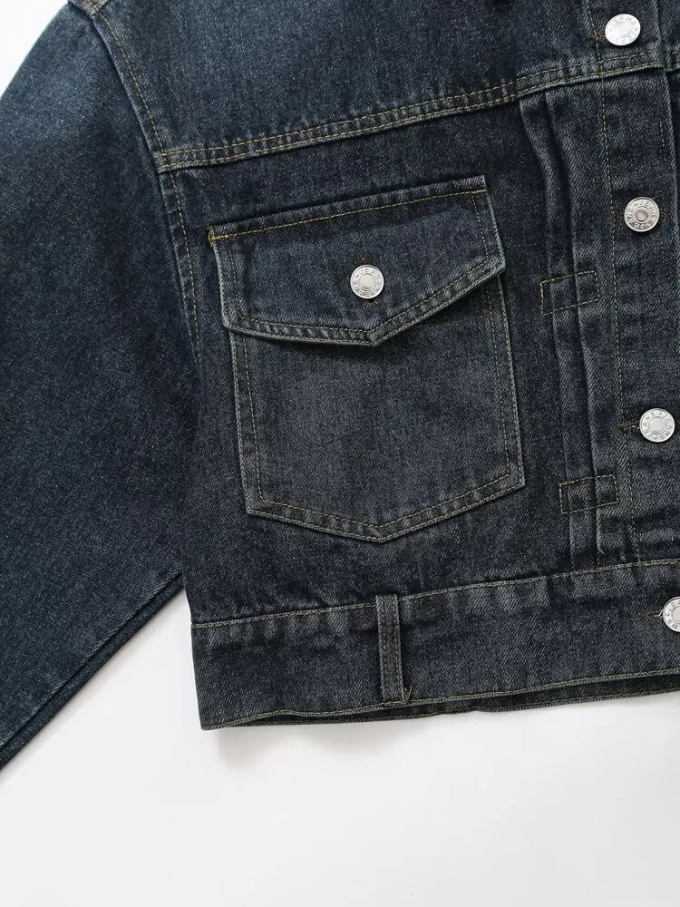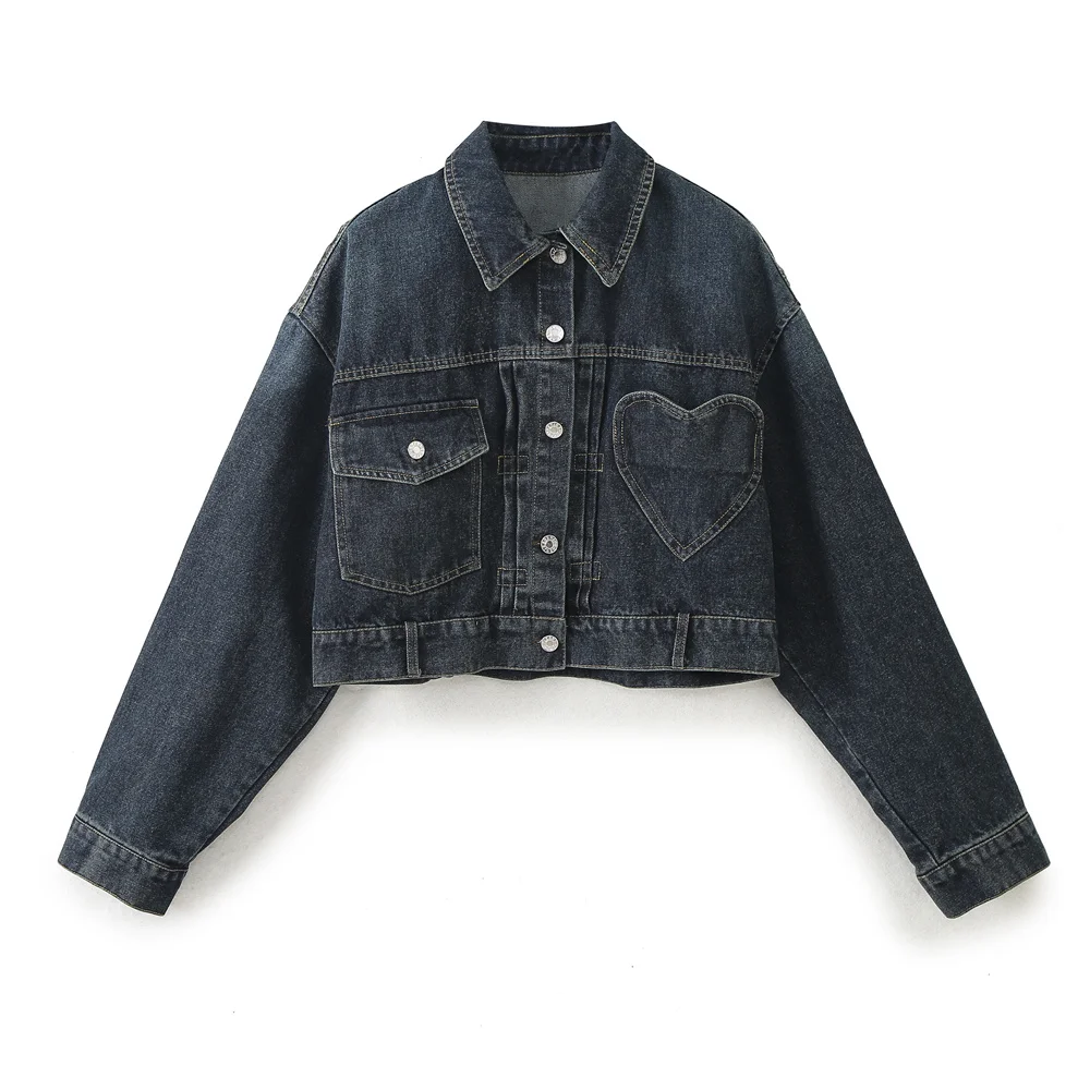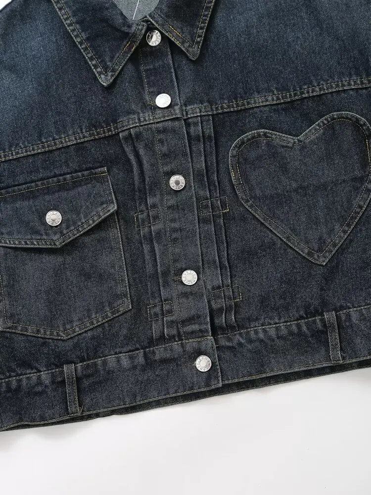 Fall Women’s Denim Jacket with Heart Pocket. Chic French-Inspired & Casual Outerwear.