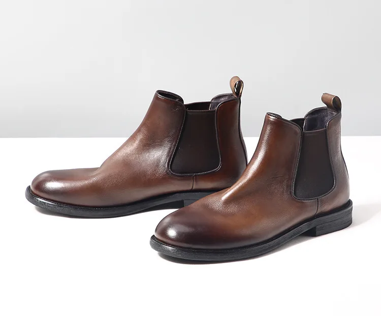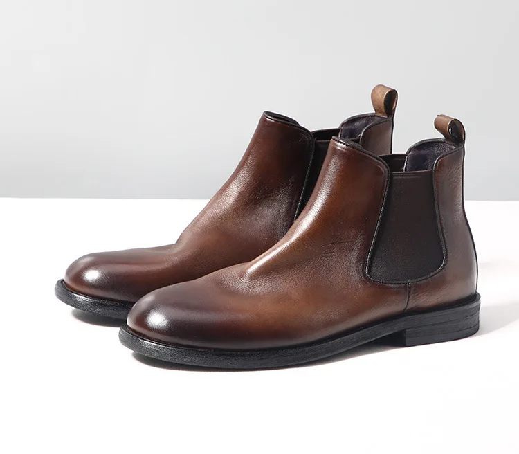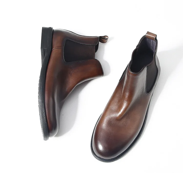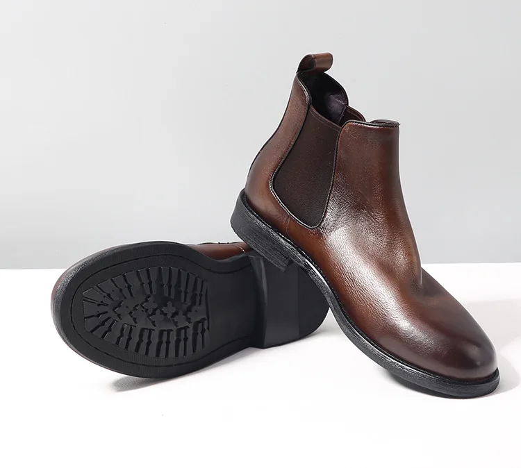 Fashion Mens Ankle Chelsea Boots Luxury Genuine Leather Autumn Designer British Style Slip on Wedding Business Social Shoes Man