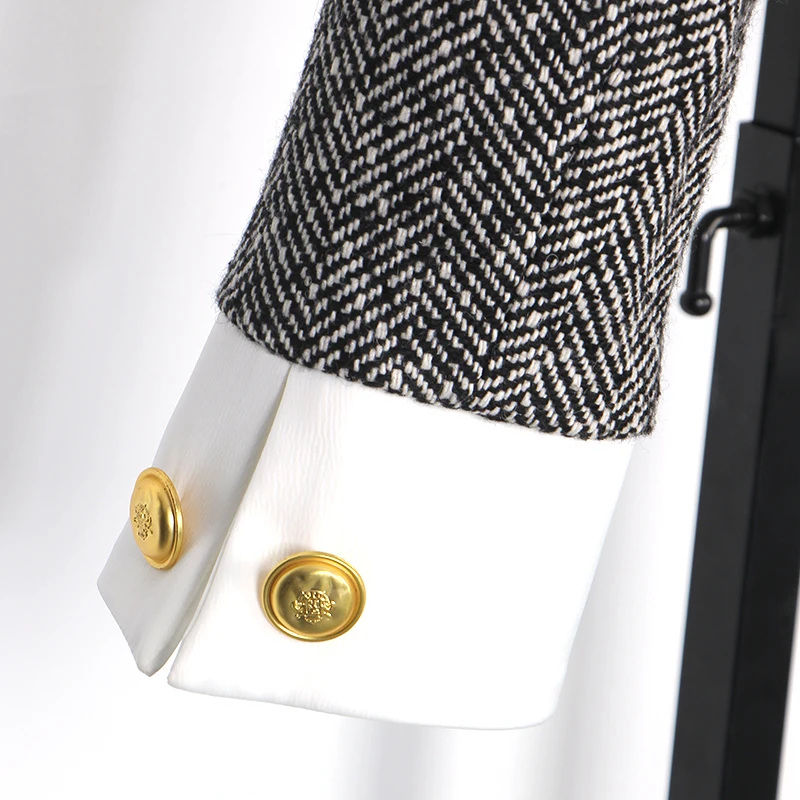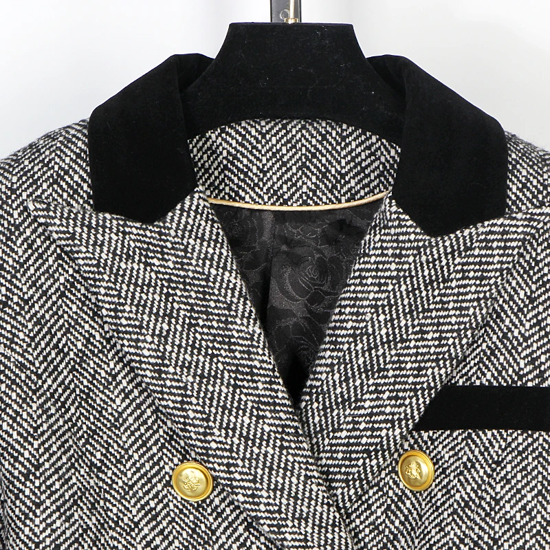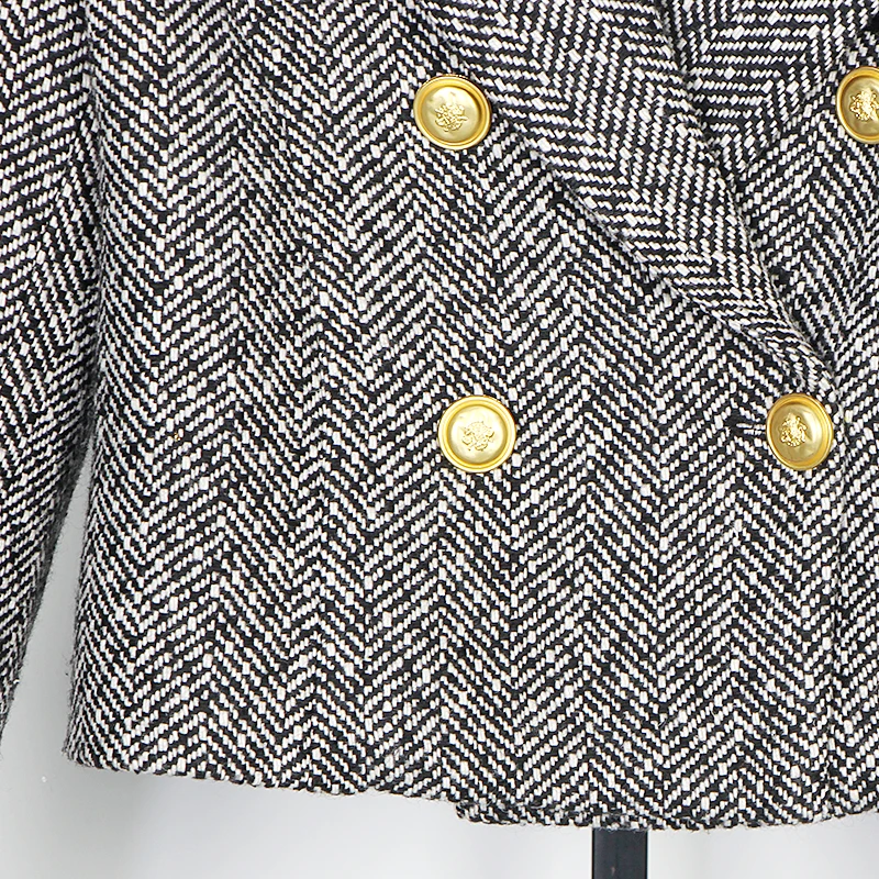 The elegant double-breasted design adds a touch of sophistication. perfect for the office lady look.