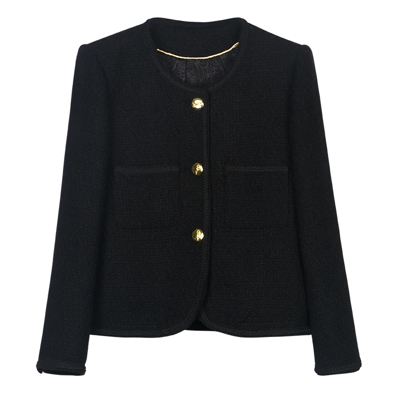 Fashionable round Neck Single-Breasted Celebrity Style High-End Temperament Small Fragrance Design Jacket Top