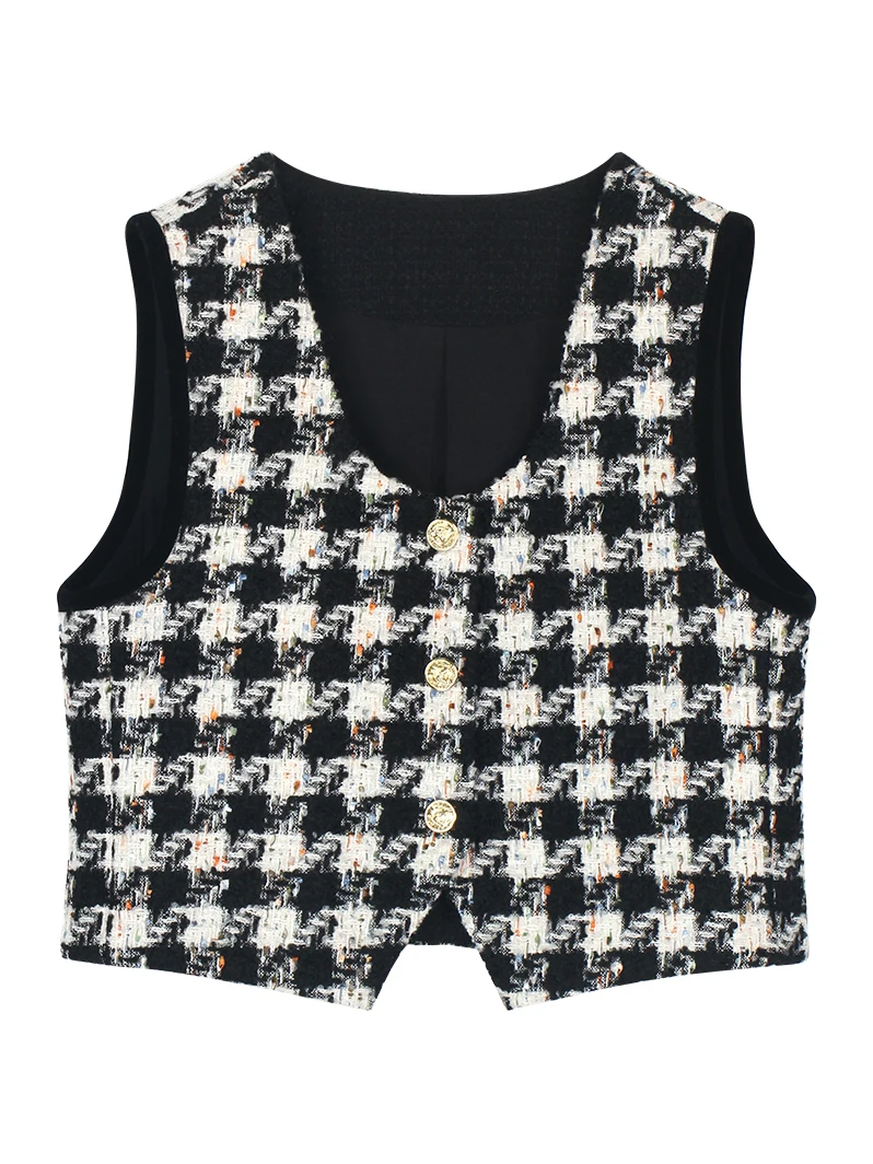 Be the first to review “Fashionable temperament Thousand Bird grid small fragrant style vest with camisole design cardigan short top for women”
