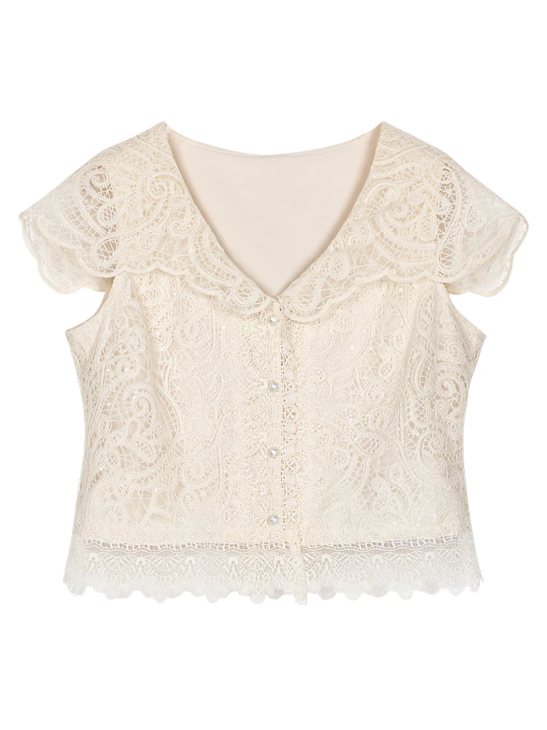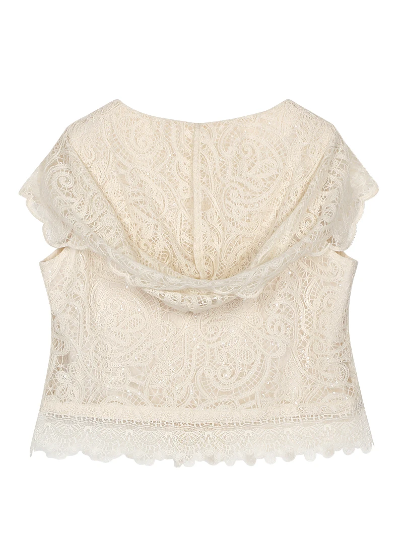 Light luxury socialite high-end temperament heavy industry sequin small fragrance style lace hollow vest hooded top