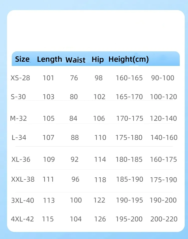 L-34, M-32, S-30, XL-36, XS-28, XXL-38, XXXL-40