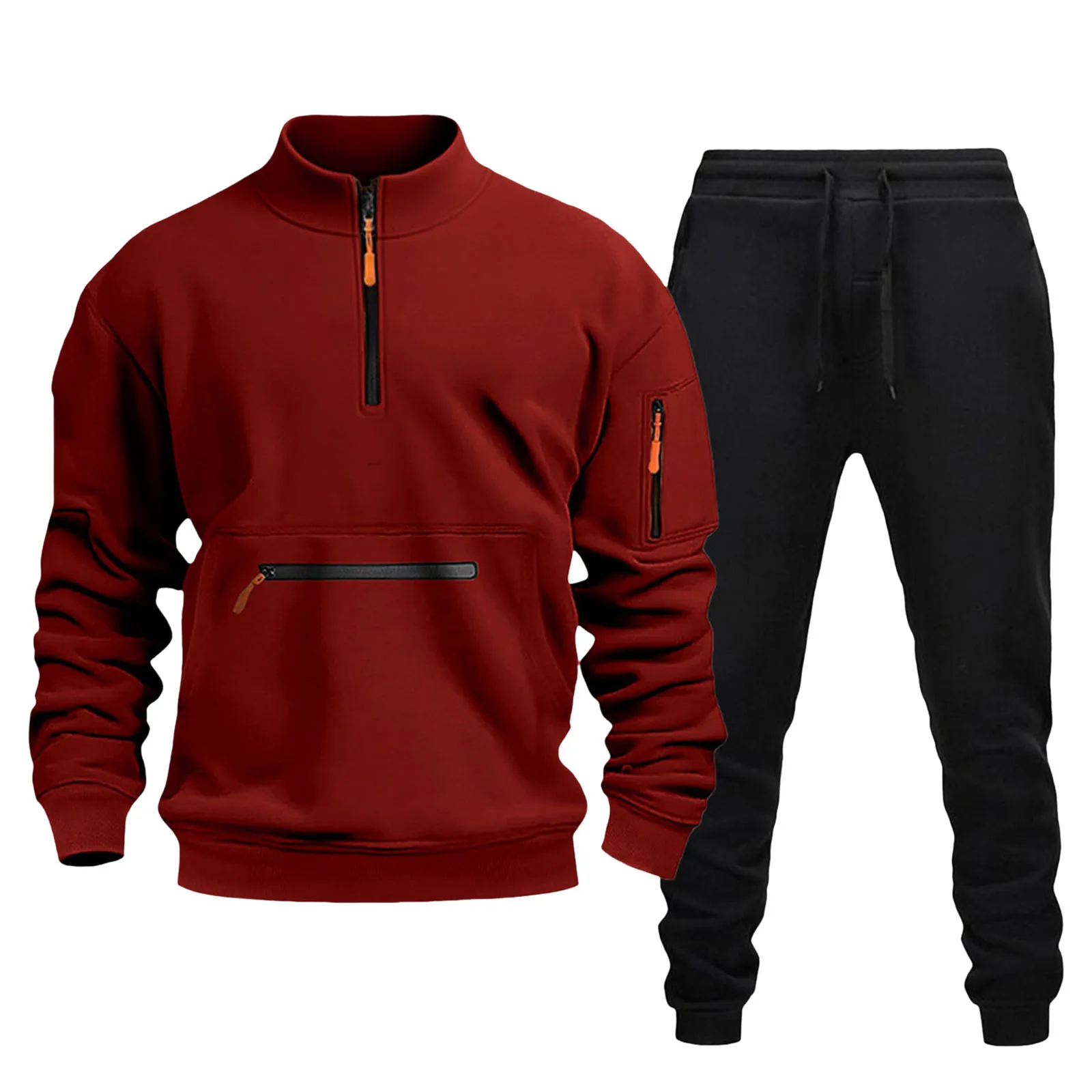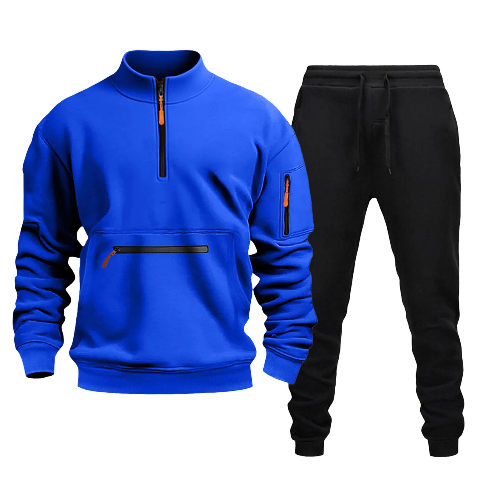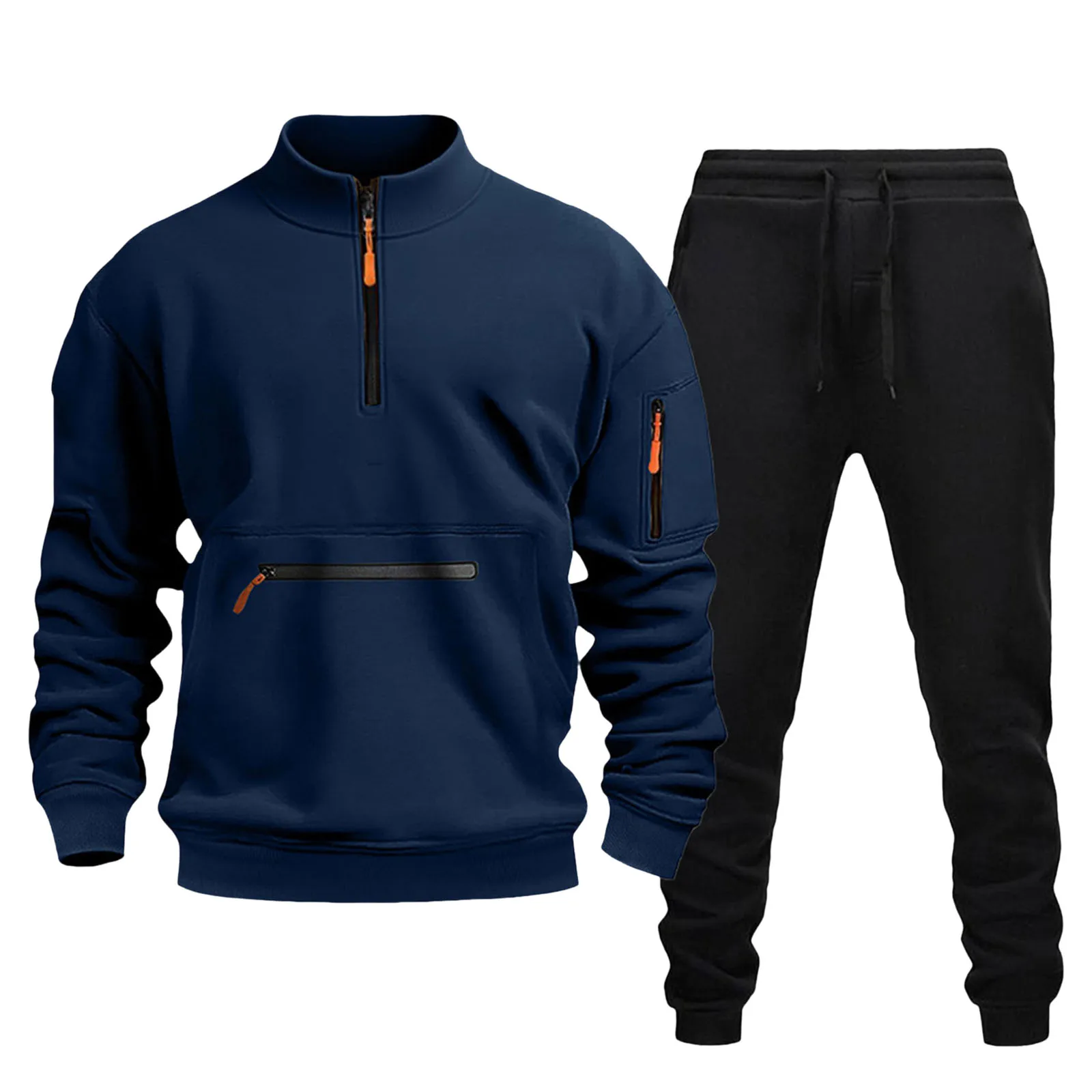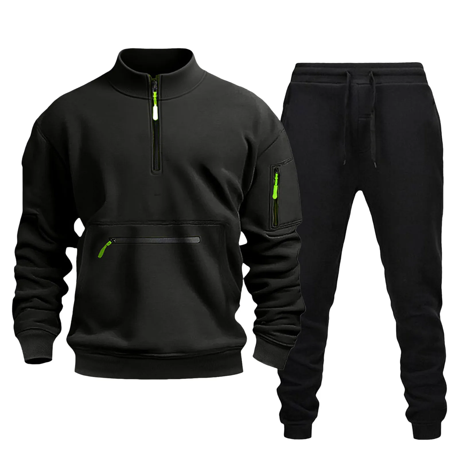 Men’s Casual 1/4 Zip Long Sleeve Pullover Workwear Sport Fleece Long Sleeve Pants Two Piece Set With Pockets