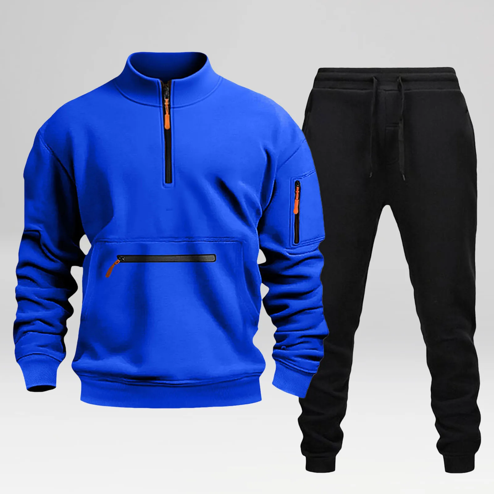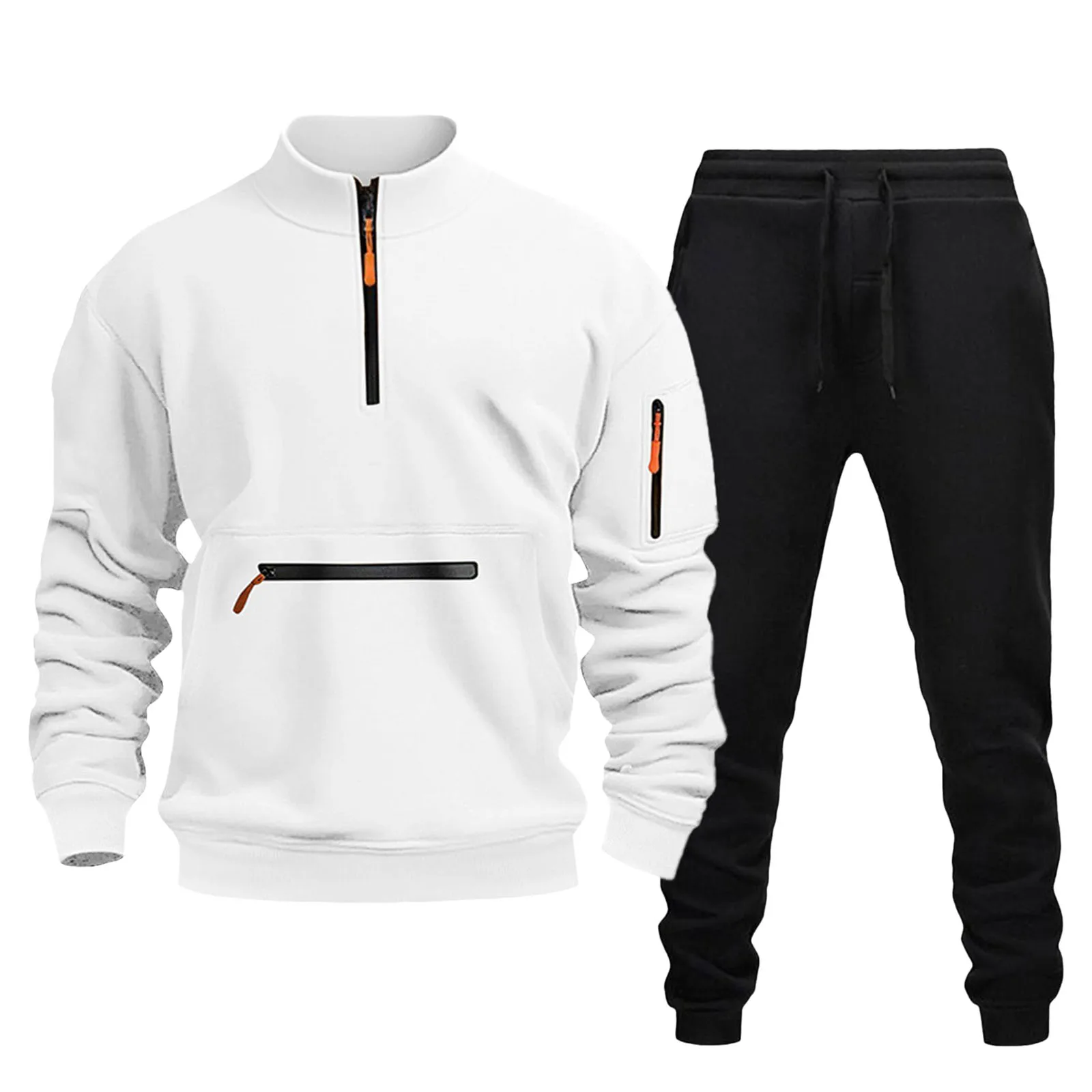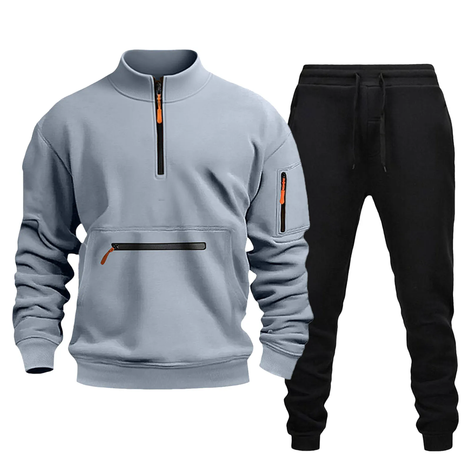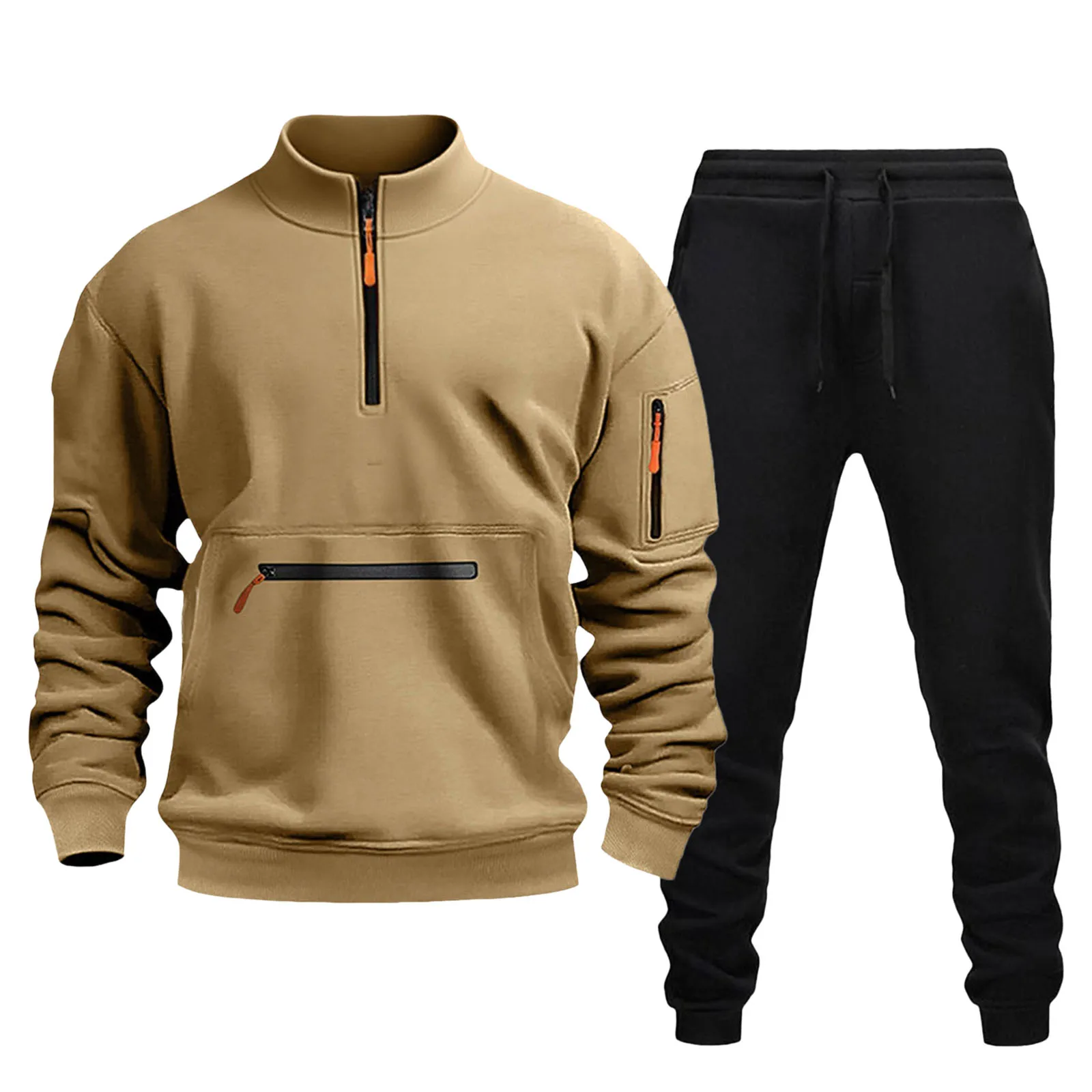 Men’s Casual 1/4 Zip Long Sleeve Pullover Workwear Sport Fleece Long Sleeve Pants Two Piece Set With Pockets