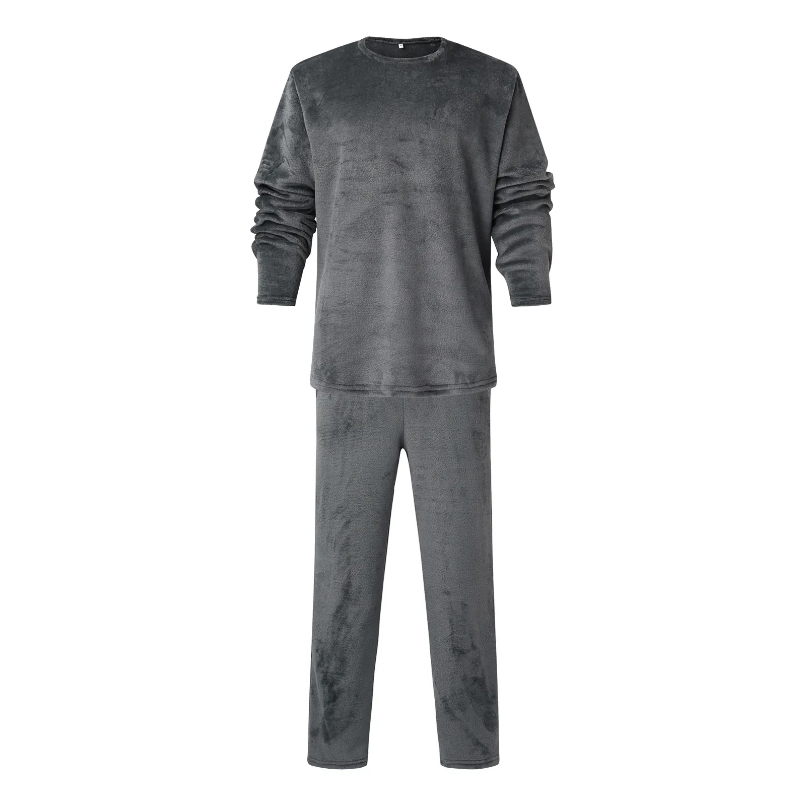 Mens Four Seasons Fashion Leisure Soft Home Solid Color Shirt Pants Pajama Set Home Service Two Piece Set Long Fleece Warm Pyjamas
