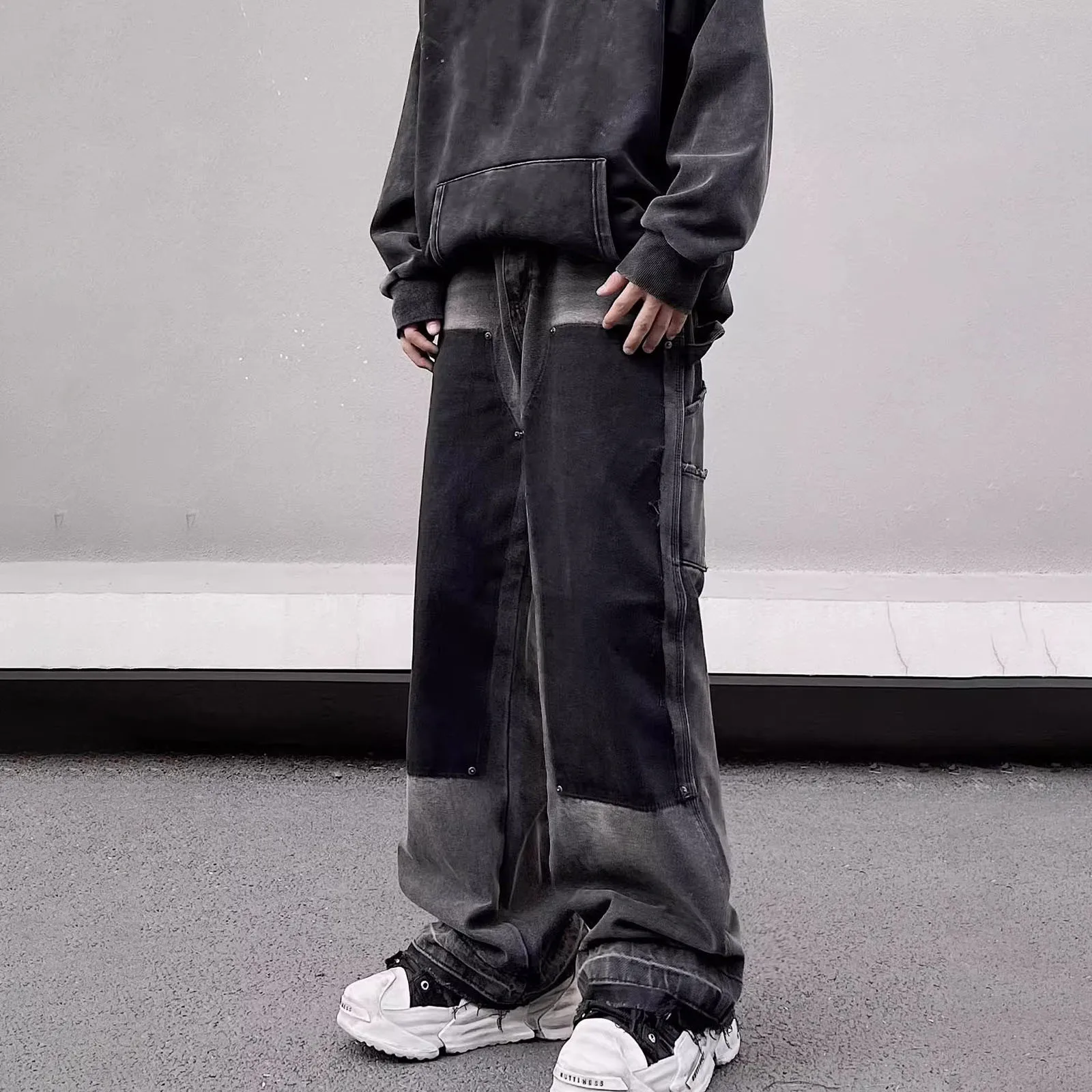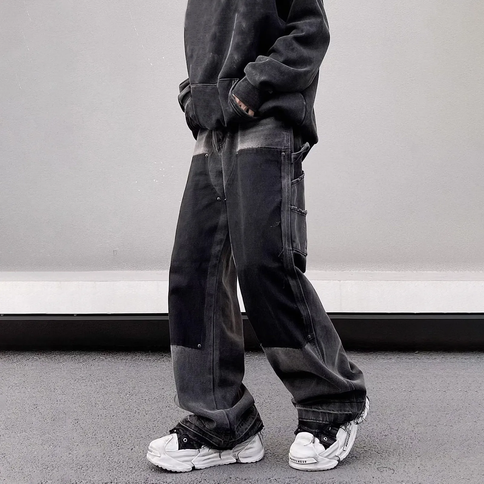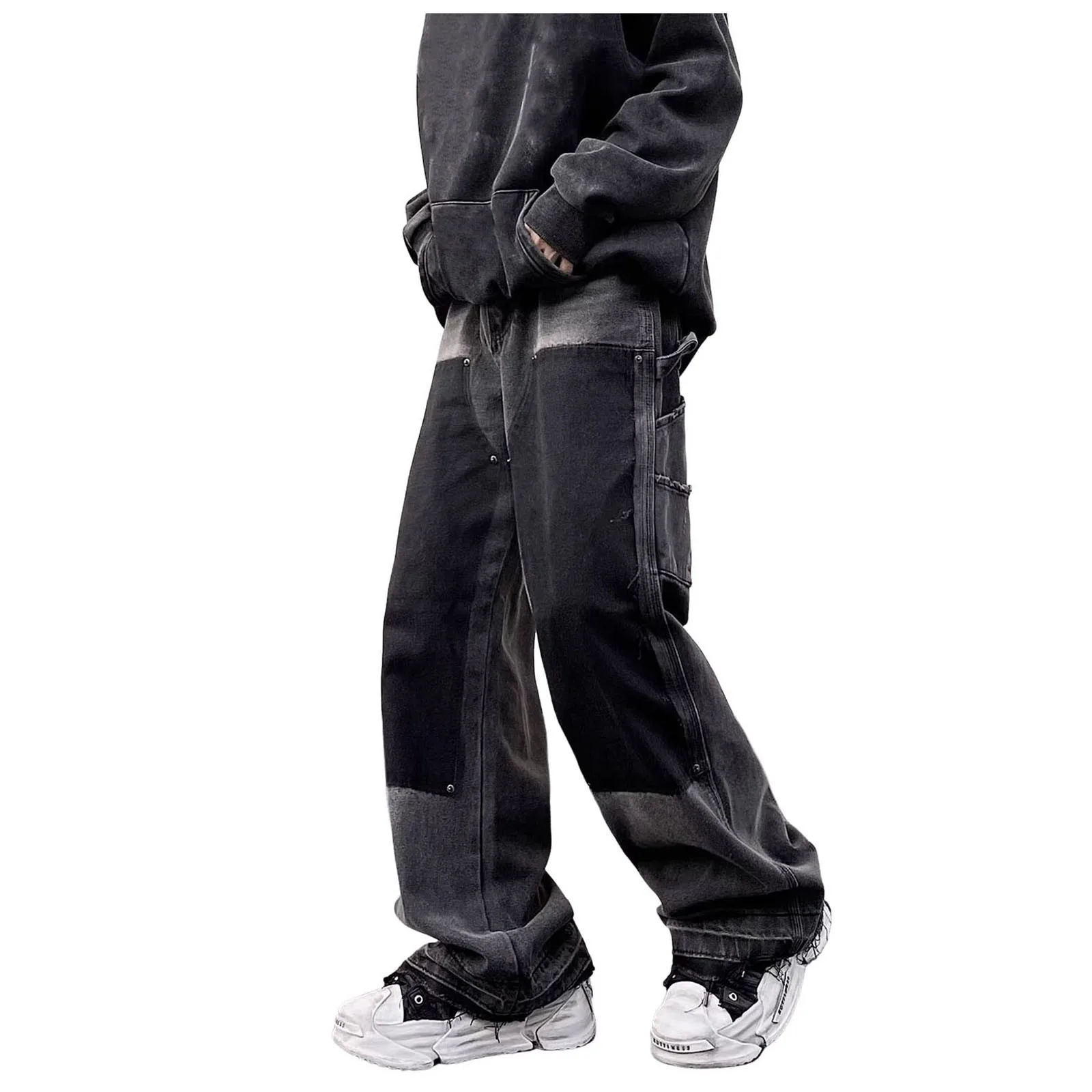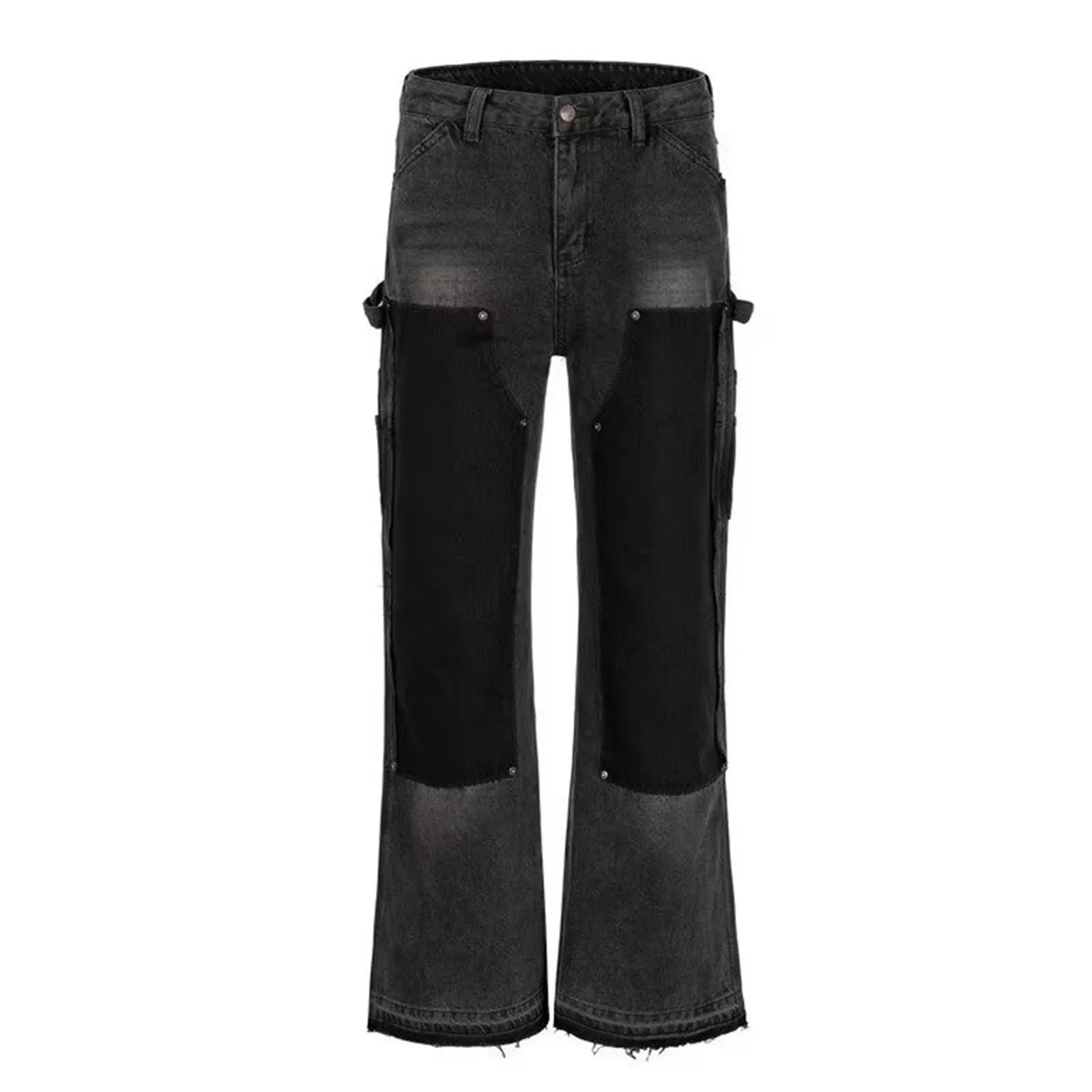 Men’s Jeans Flare Jeans Fashion Ink Splicing Denim Pants With Pockets Casual Pants