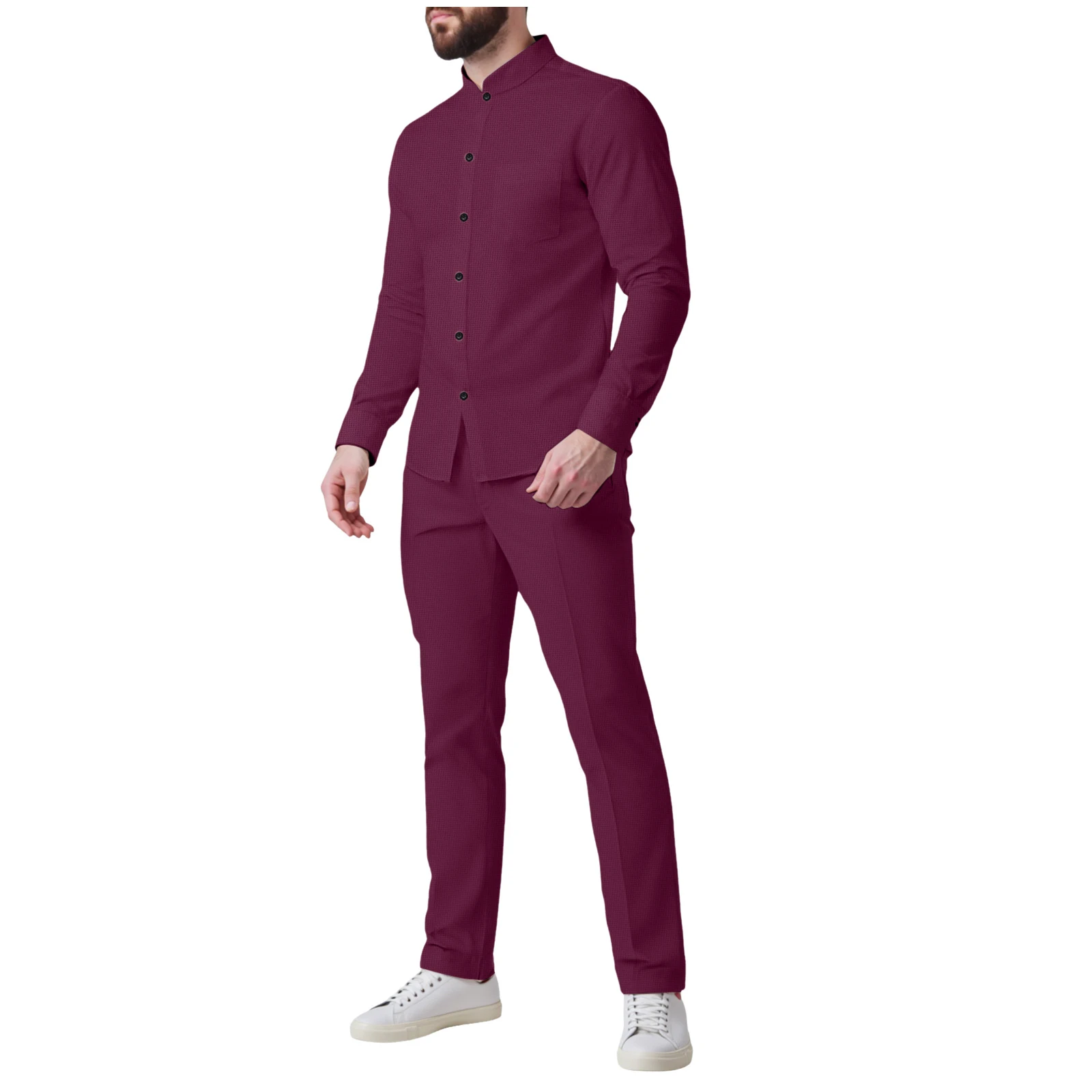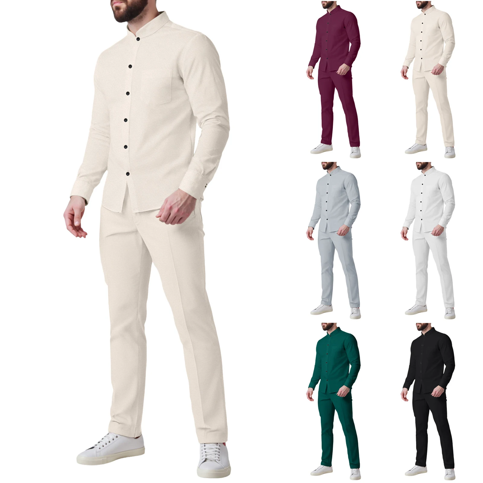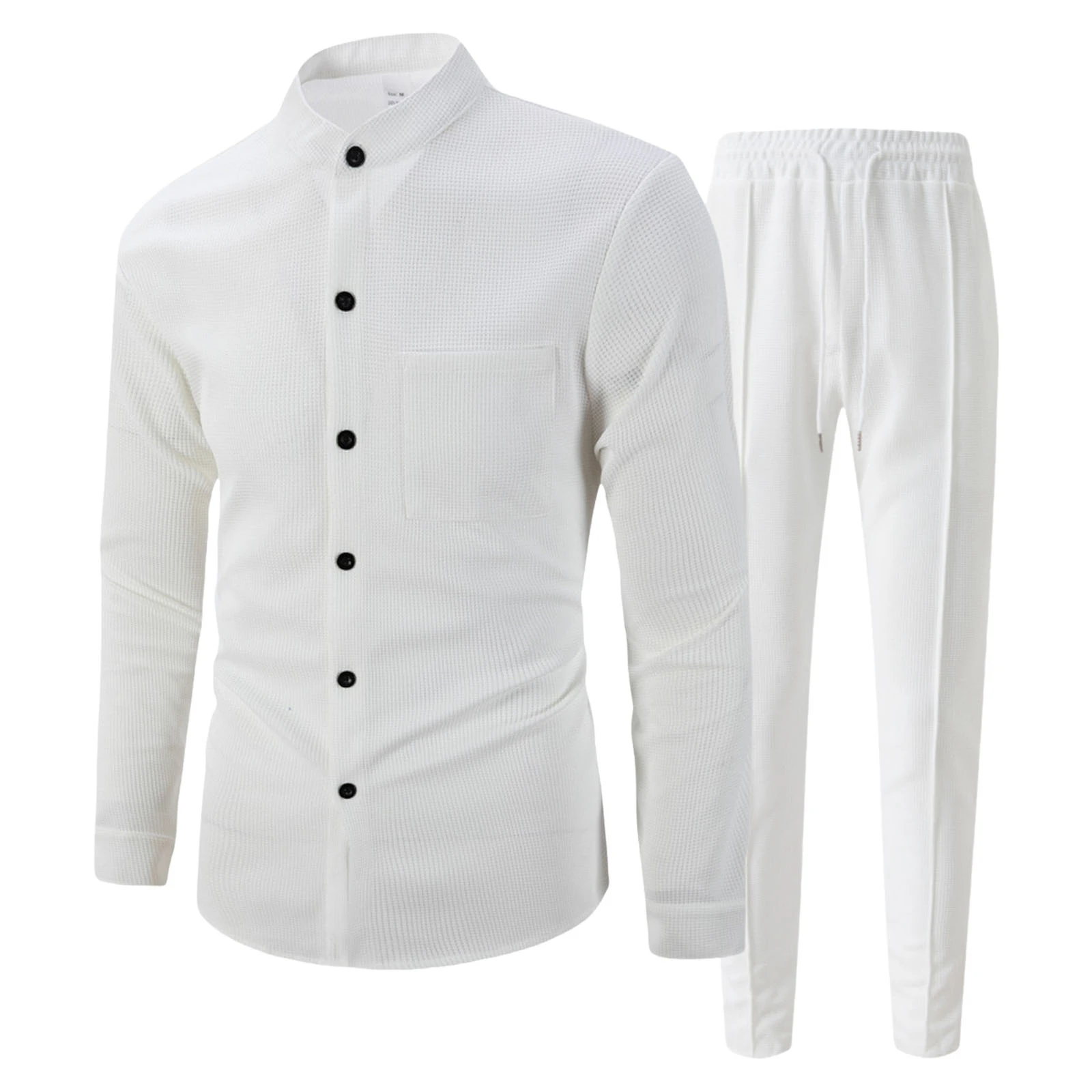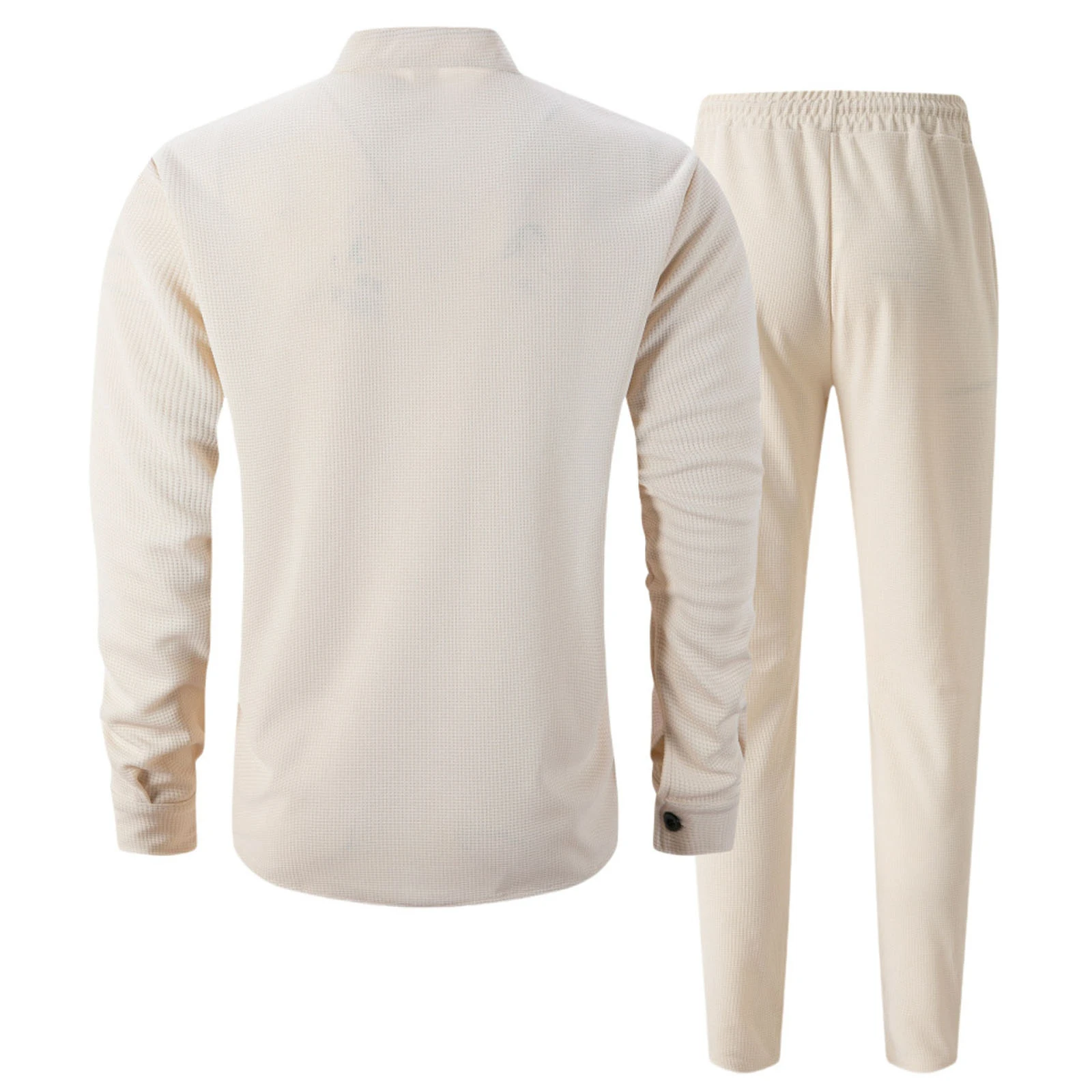 Men’s Solid Color Stand Knitted Cardigan Long Sleeve Long Pants Set