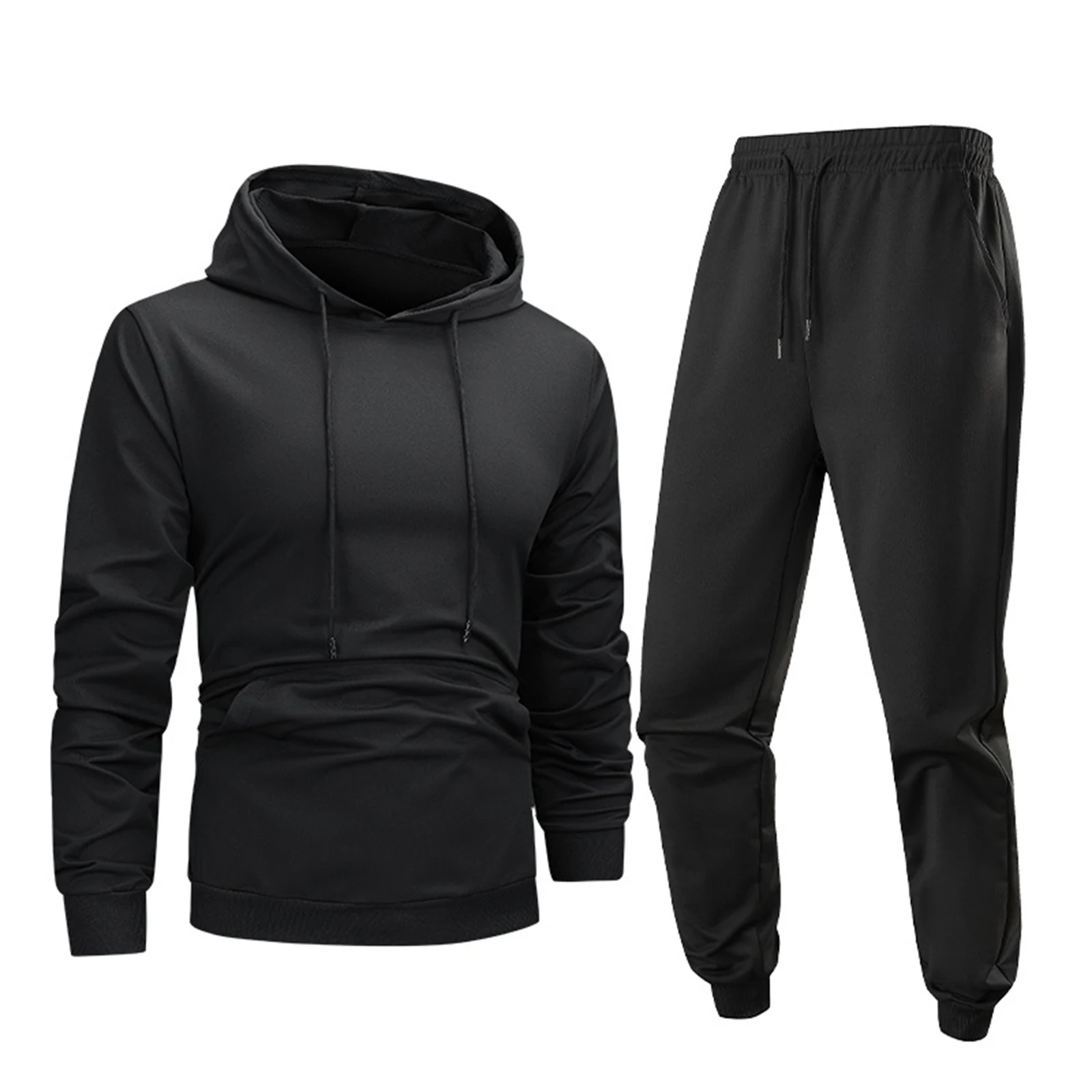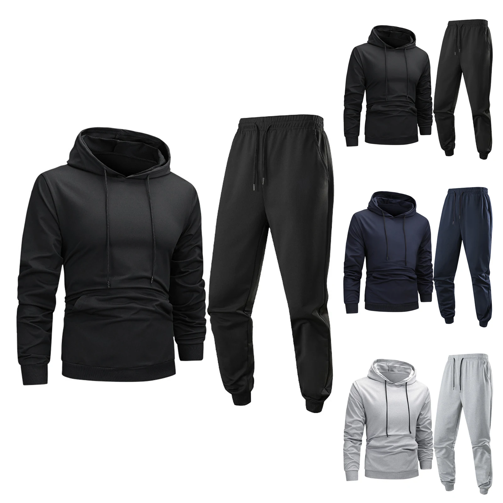 Men’s Sportswear Solid Color Hooded Sweater Elastic Waist Lace Casual Pants