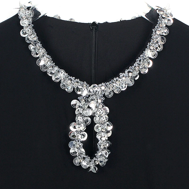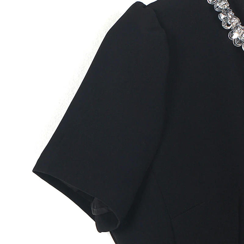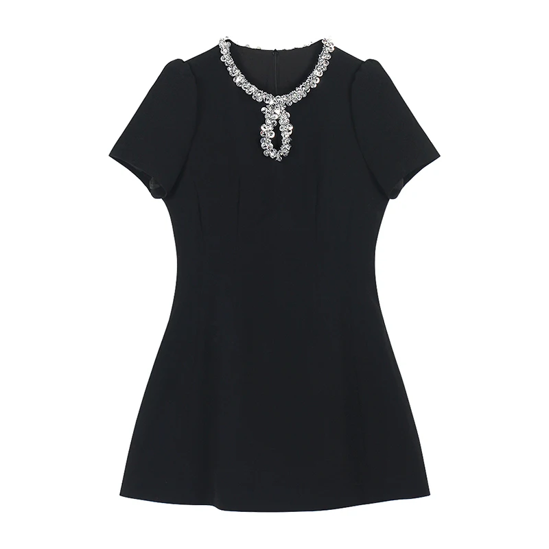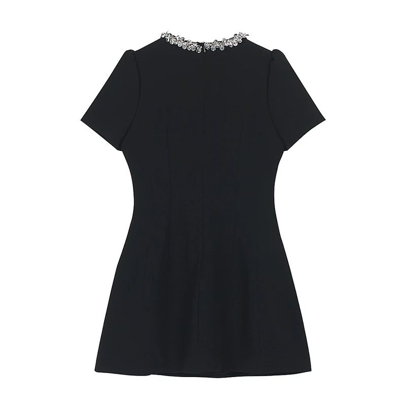 Be the first to review “New fashionable, elegant, light luxury Hepburn style nail bead studded diamond Western style dress looks slim and black”