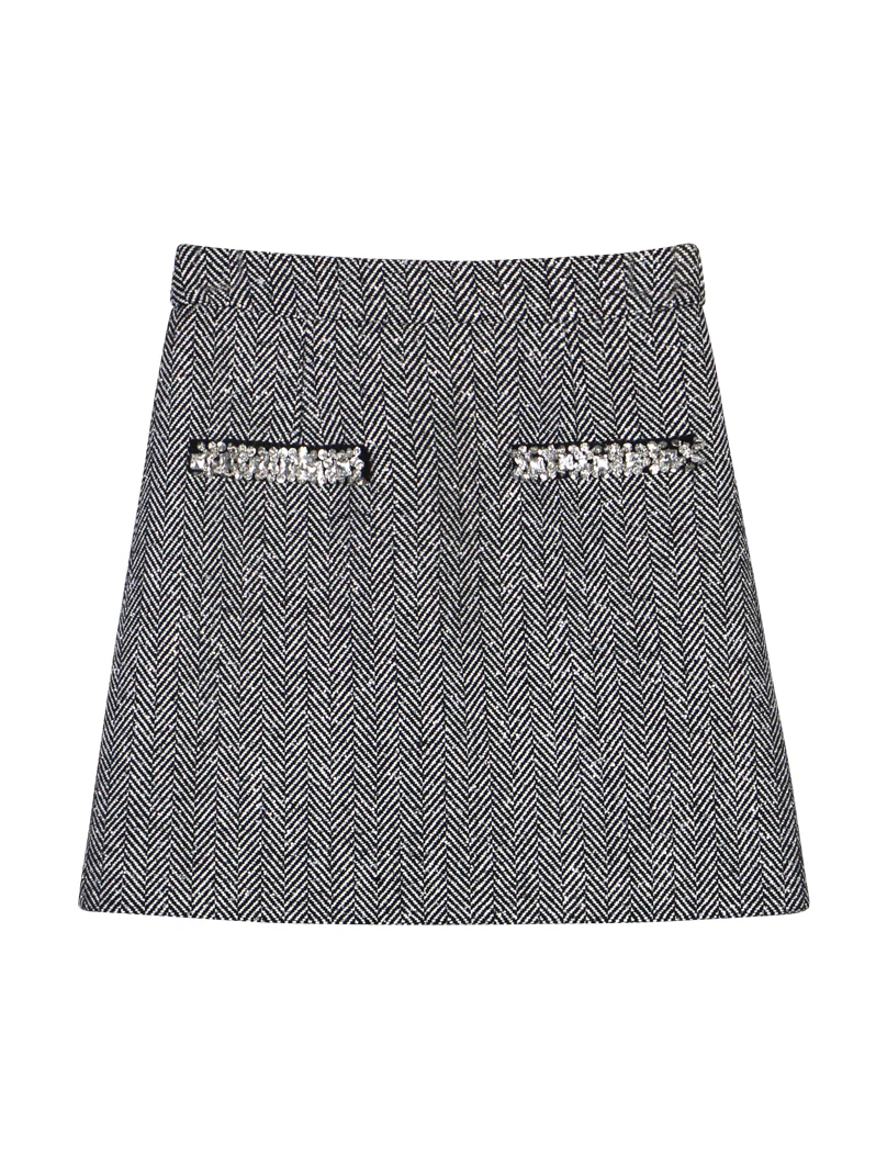 New style Zhao Liying’s same style as the bright star herringbone small fragrance style heavy industry sequin temperament skirt
