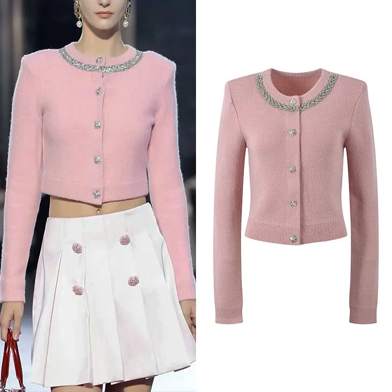 Be the first to review “Pink elegant short cardigan girl diamond collar short top”