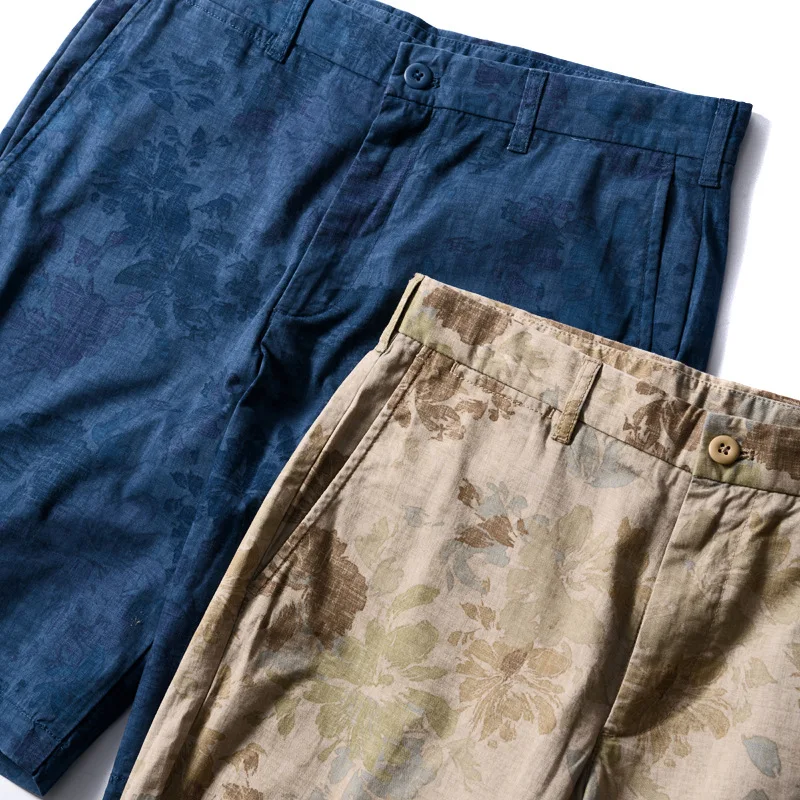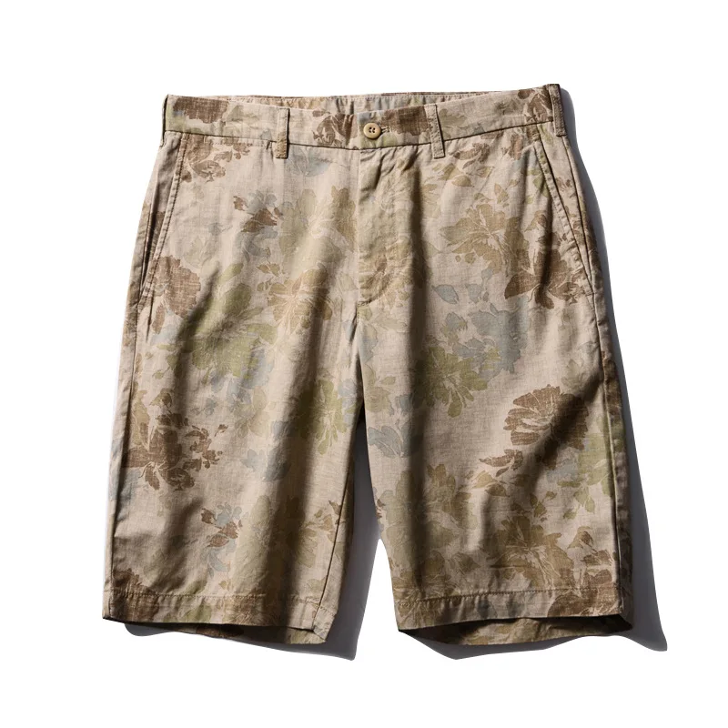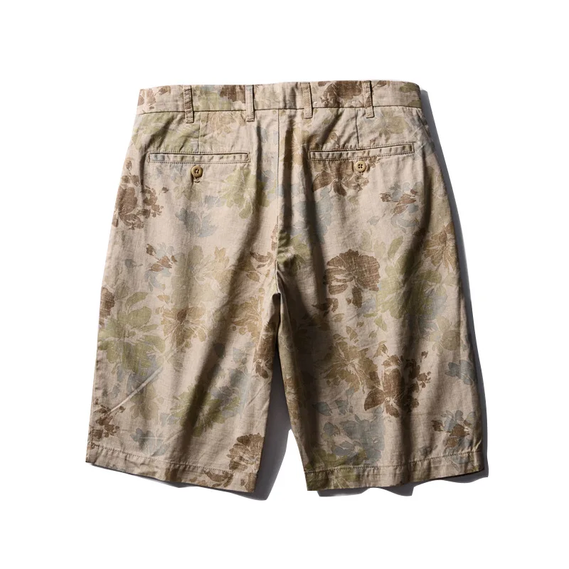 Summer cotton men's casual straight leg camouflage printed shorts, cropped shorts, beach pants