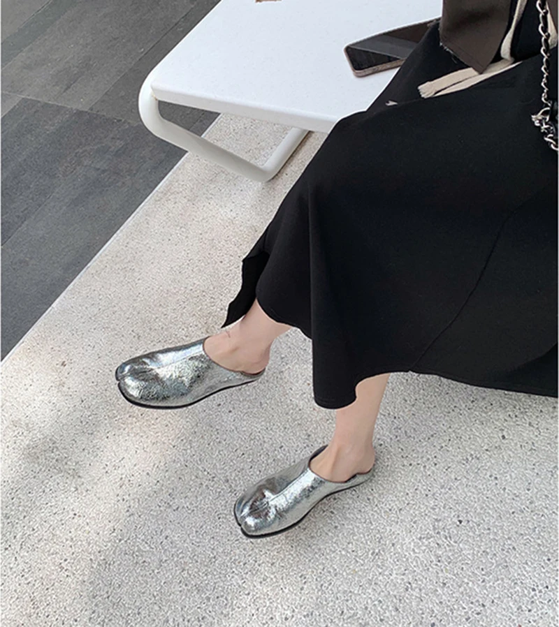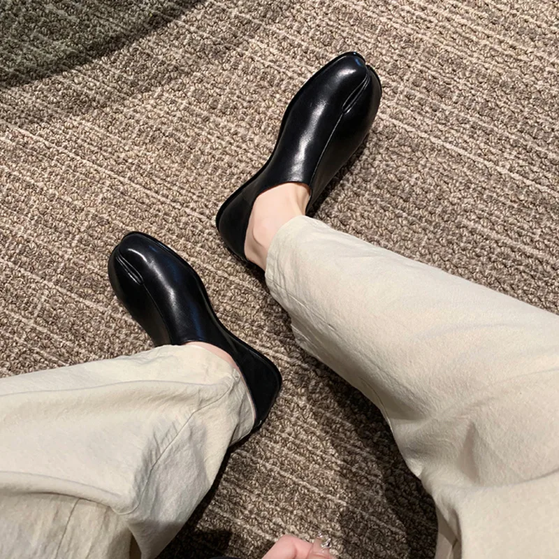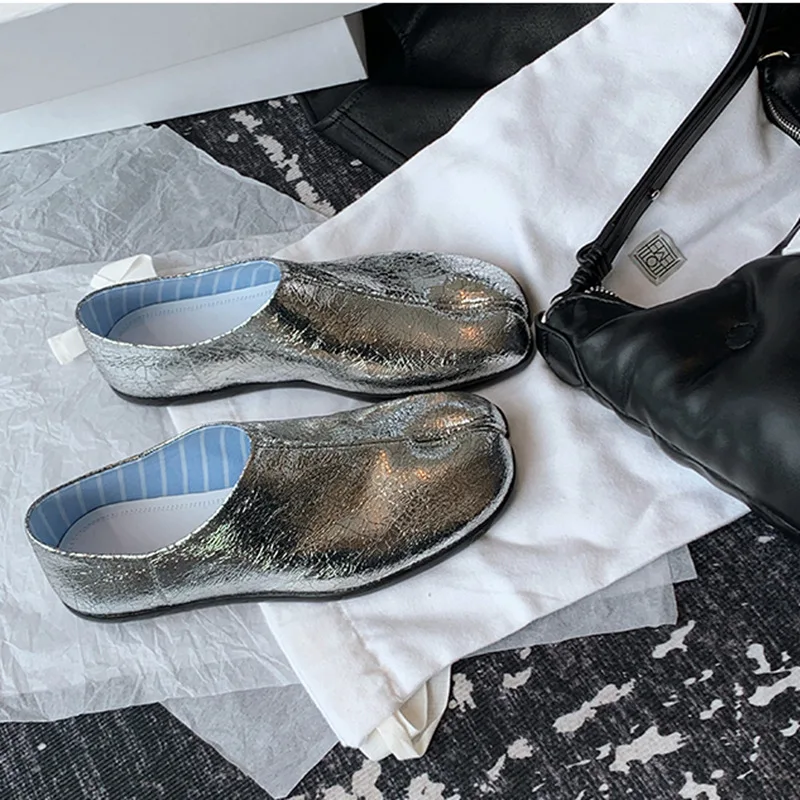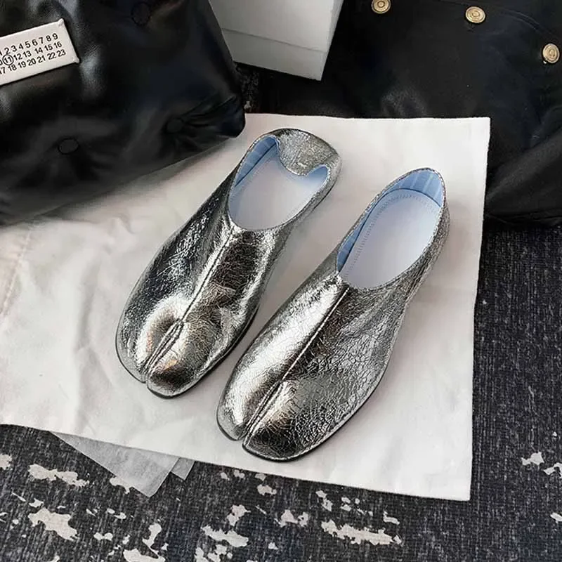 Tabi Ninja Shoes Women's Microfiber Leather Comfortable Flat Shoes Split-toe Slippers Soft-soled Loafers Short Ladies split toe