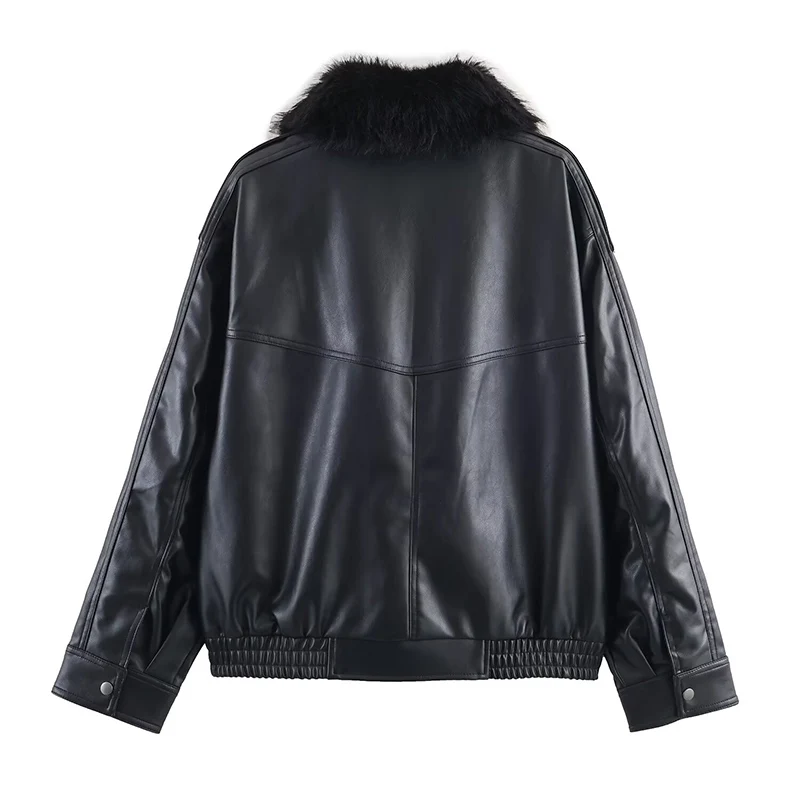 Women Autumn Winter Fur Collar Jacket Faux Leather Casual Loose Coat Female Long Sleeve Jackets For Women Fashion New Outerwears