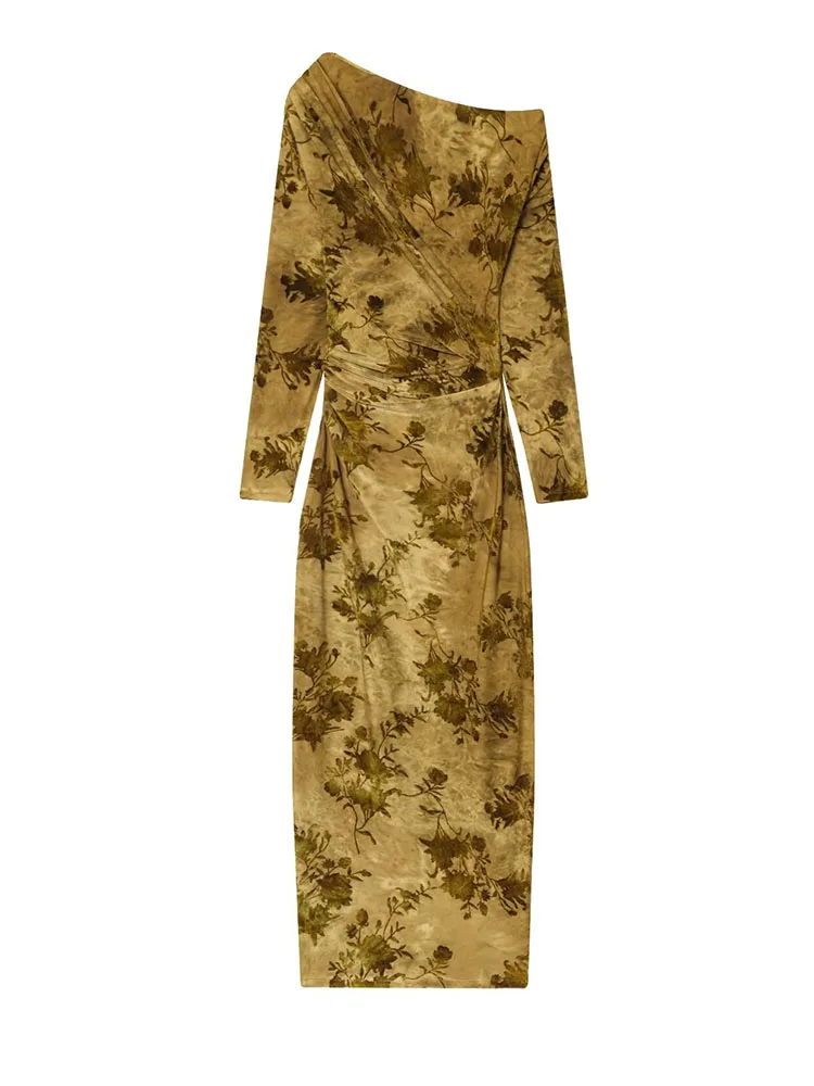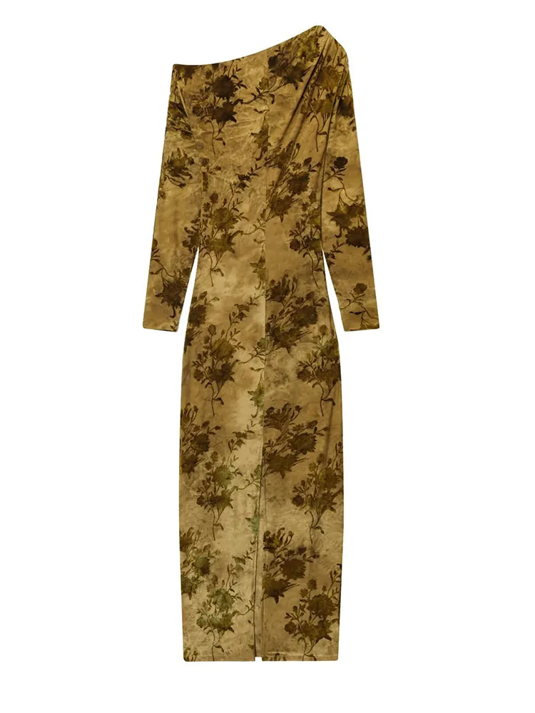 Women Diagonal Collar Long Dress 2025 New Women Fashion Long Sleeves Off-Shoulder Elegant Dresses Women Fall Sexy Party Dress