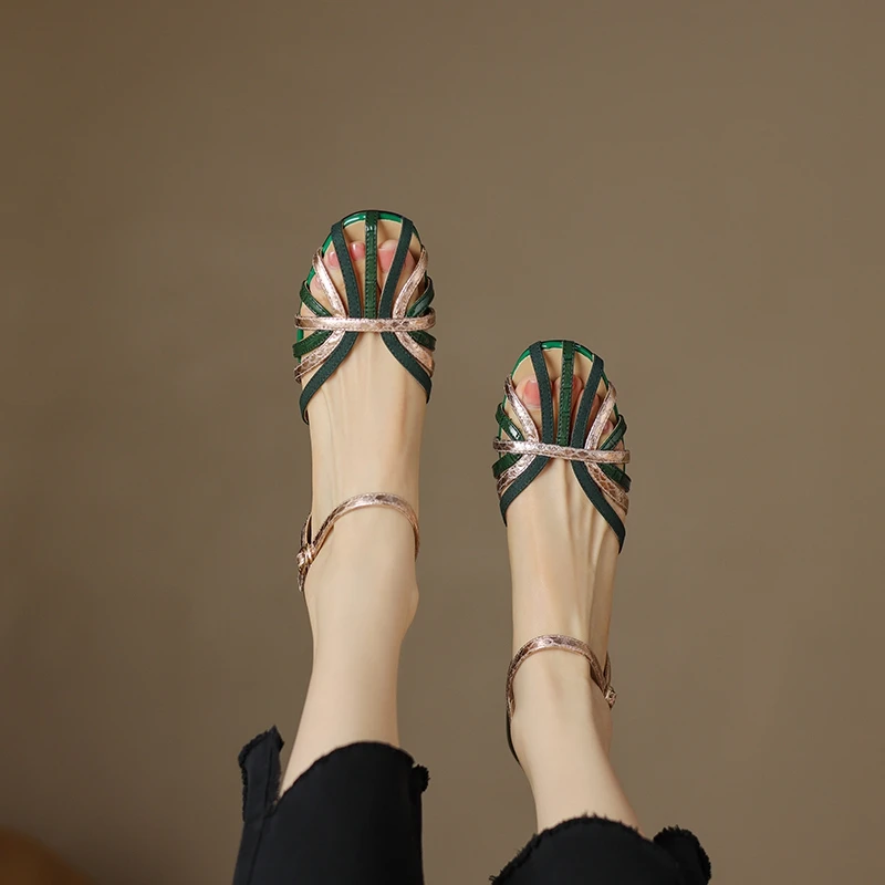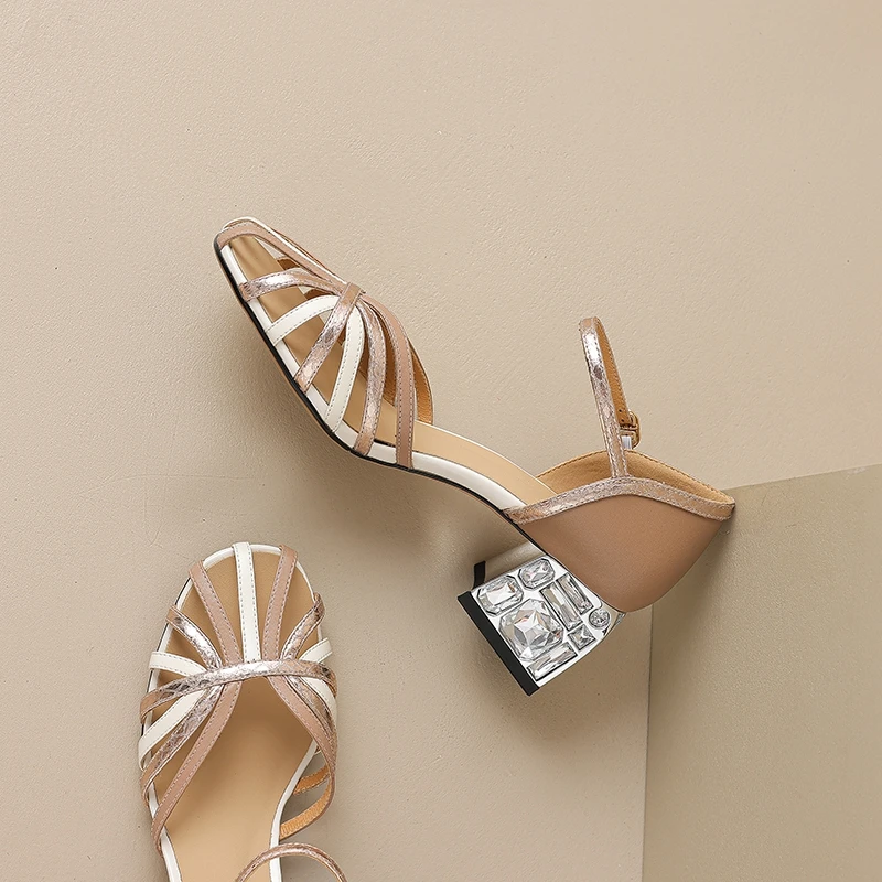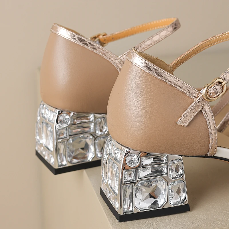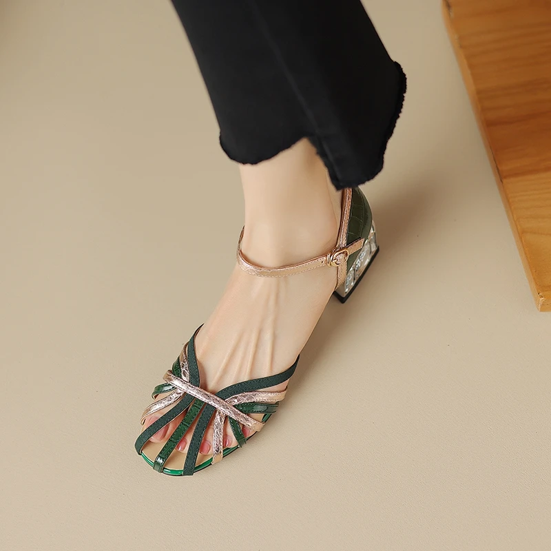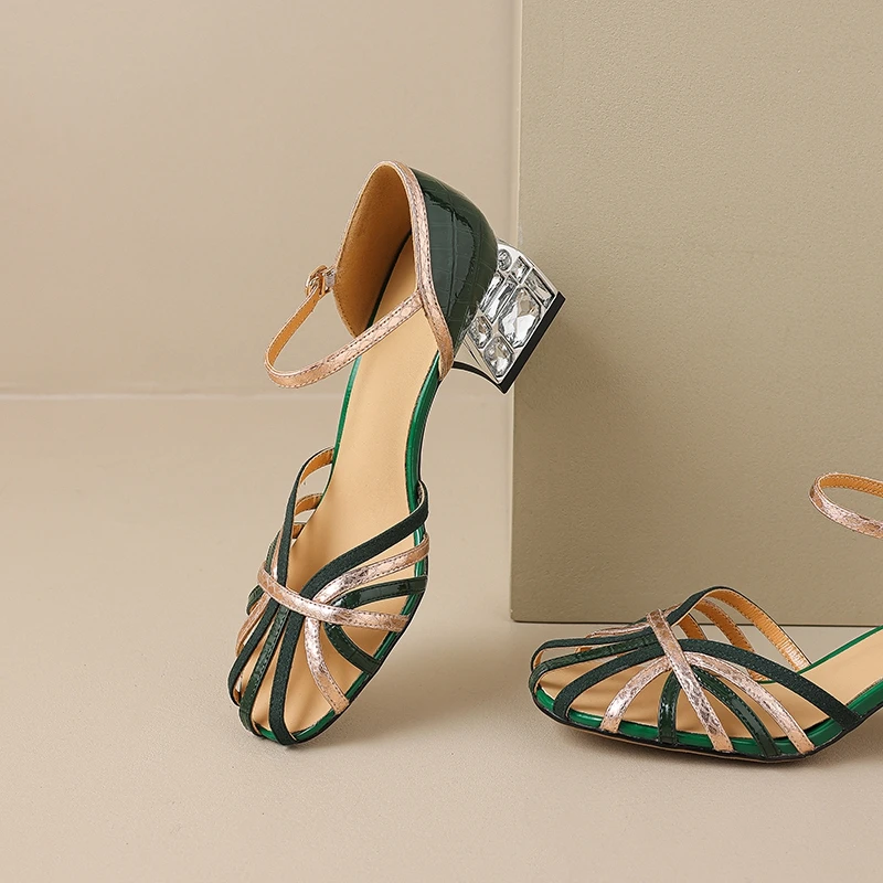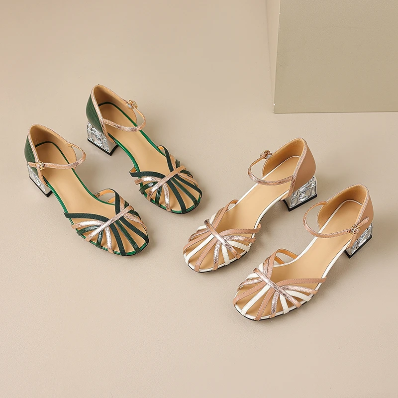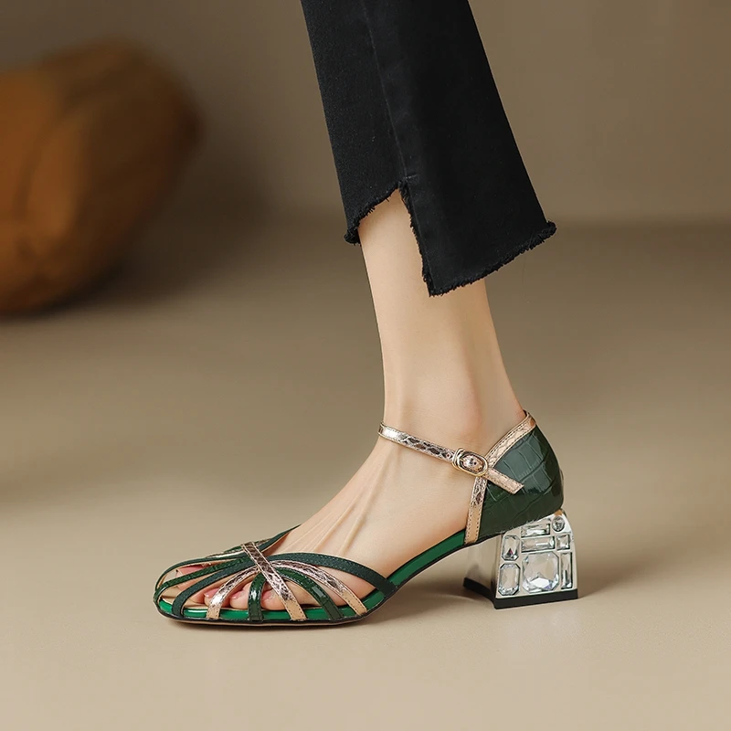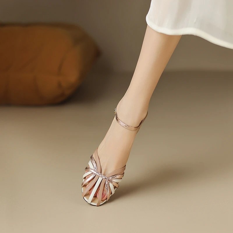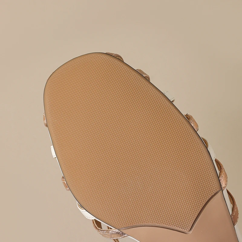 Kaky's New Cow Pasted Leather Pointed Wedge Heels High Heels Women's Shoes Large Slippers Wrapped Half Slippers Sheepskin Footpa