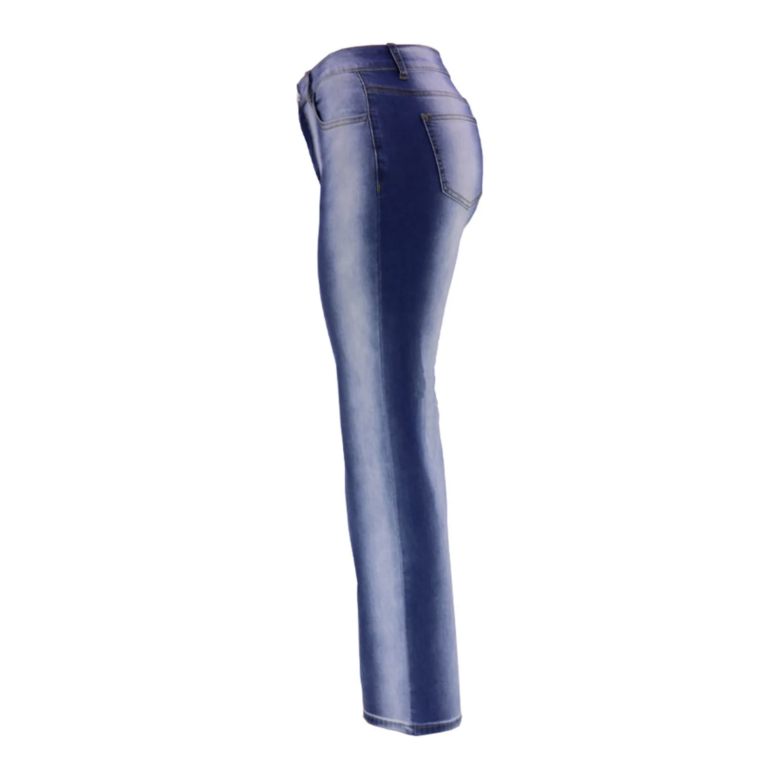Women’s Patchwork Jeans Bell Bottom Hem Denim Pants Slim Bootcut Jean