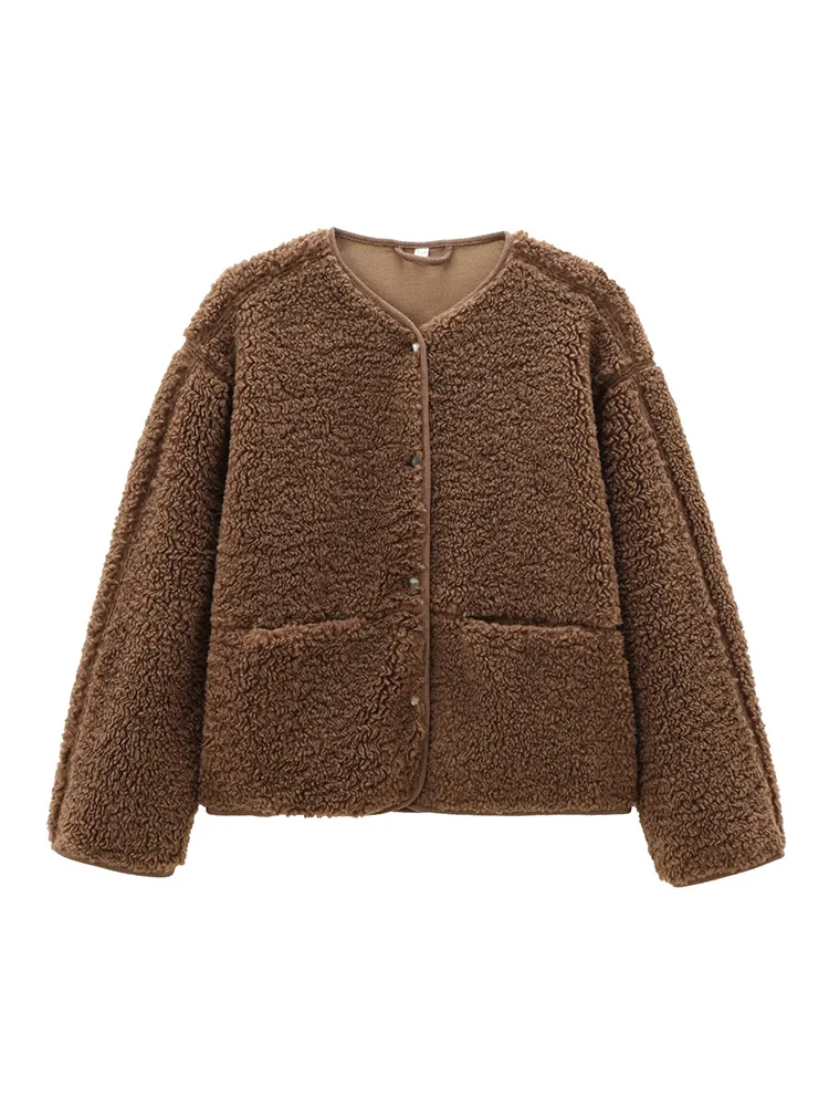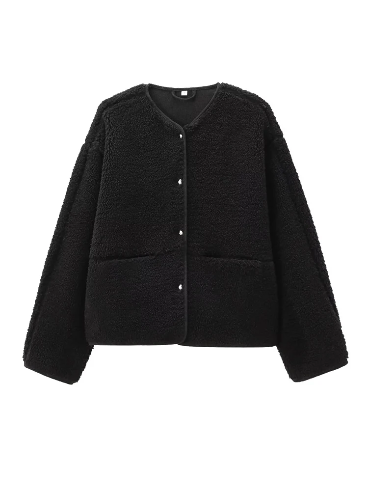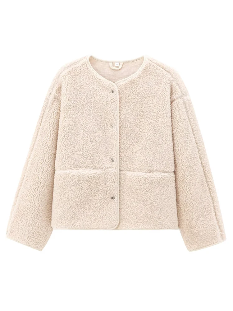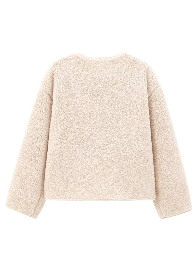 Women’s Teddy Fleece Jacket 2025 Autumn Winter New Solid Color Long Sleeves Jackets Female Fashion Elegant Streetwears Outerwear